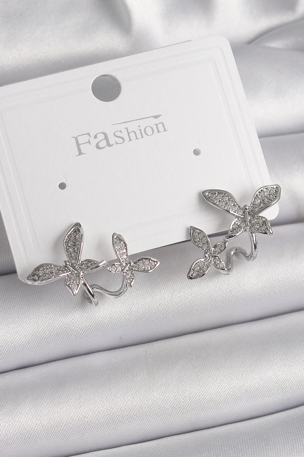 BFS Pirinç Gümüş Renk Zirkon Taşlı Kelebek Model Kadın Küpe