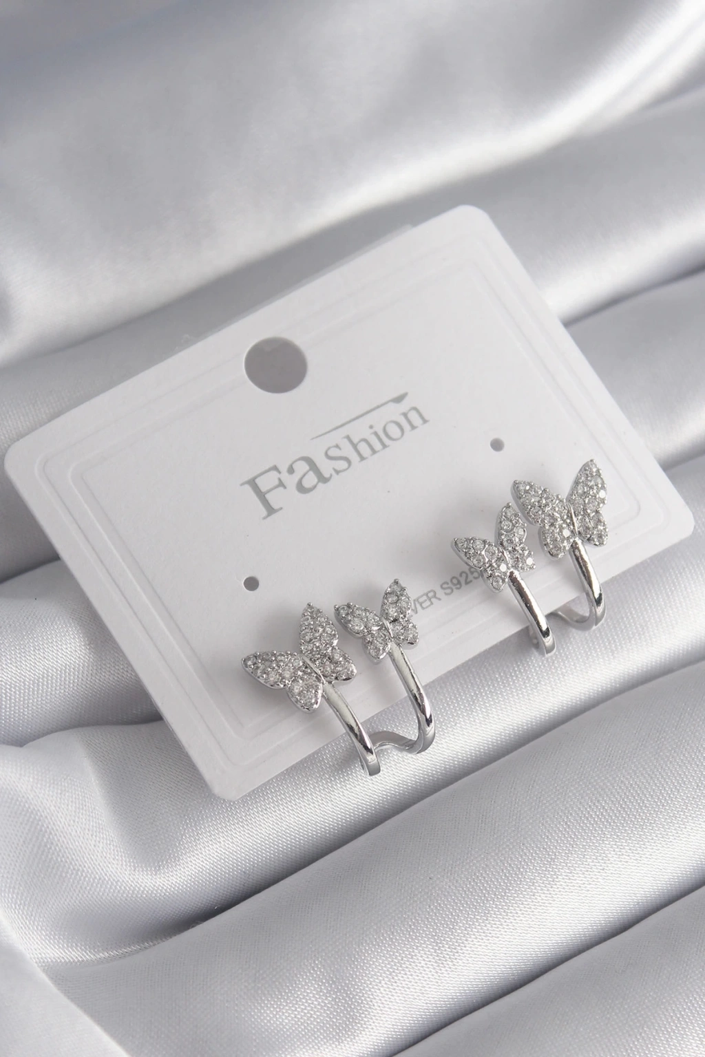 BFS Pirinç Gümüş Renk Zirkon Taşlı Kelebek Model Kadın Küpe