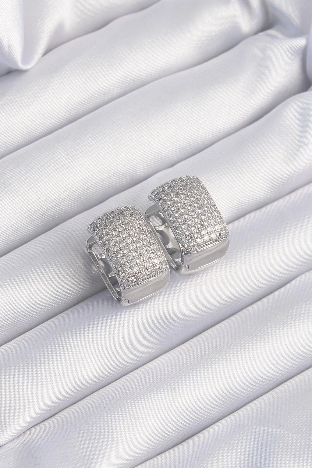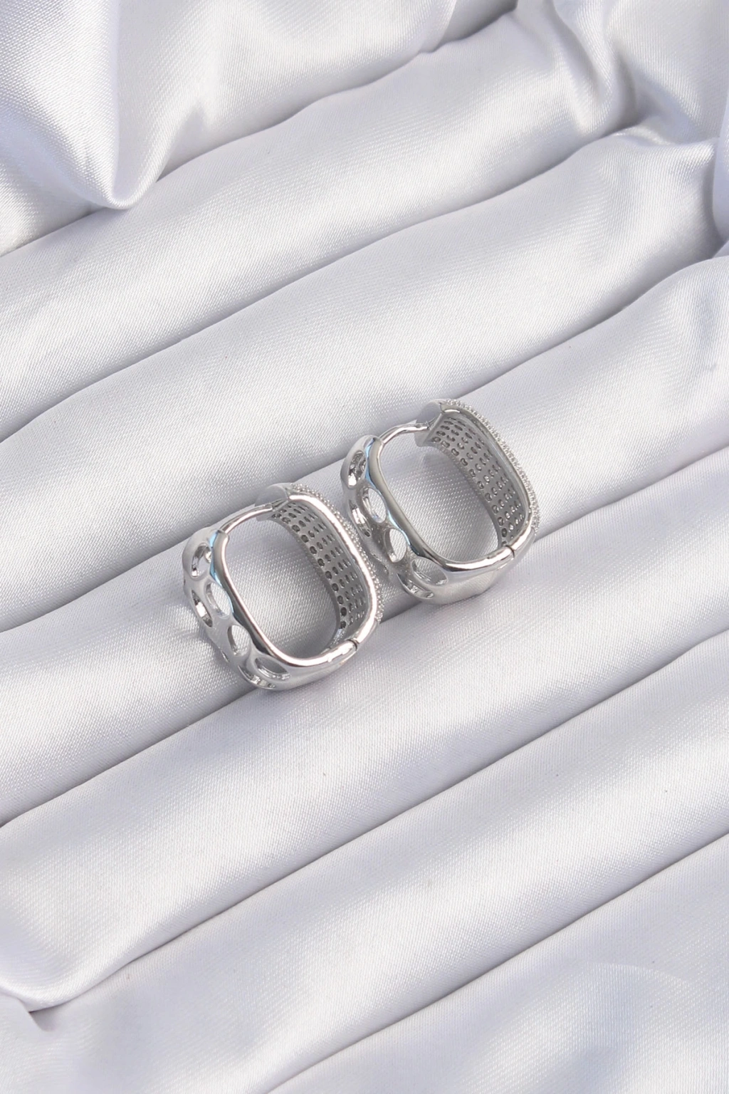 BFS Pirinç Gümüş Renk Zirkon Taşlı Minimal Halka Küpe