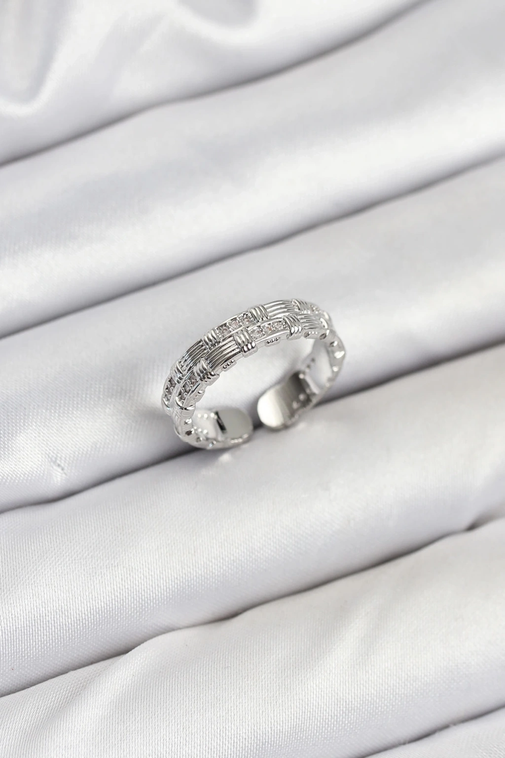 BFS Pirinç Gümüş Renk Zirkon Taşlı Sırım Kadın Yüzük