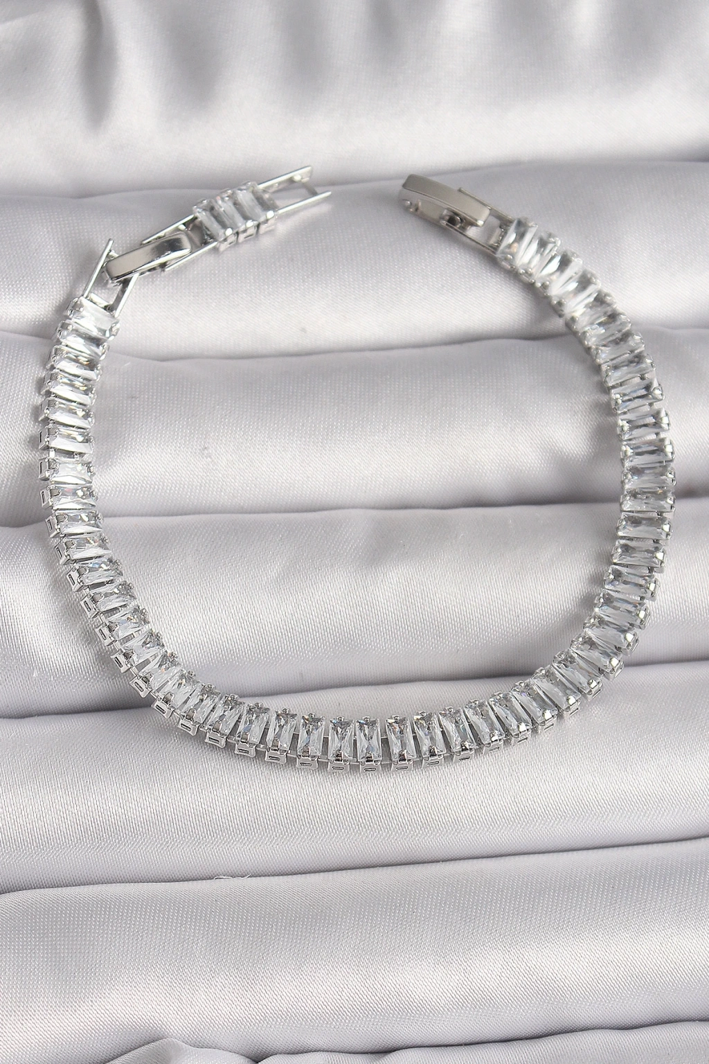 BFS Pirinç Gümüş Renk Zirkon Taşlı Su Yolu Model Kadın Bileklik