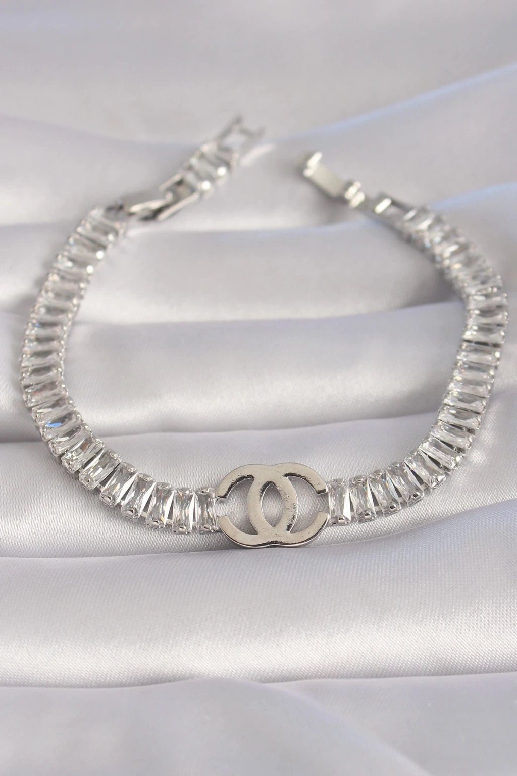 BFS Pirinç Gümüş Renk Zirkon Taşlı Su Yolu Model VIP Seri Kadın Bileklik