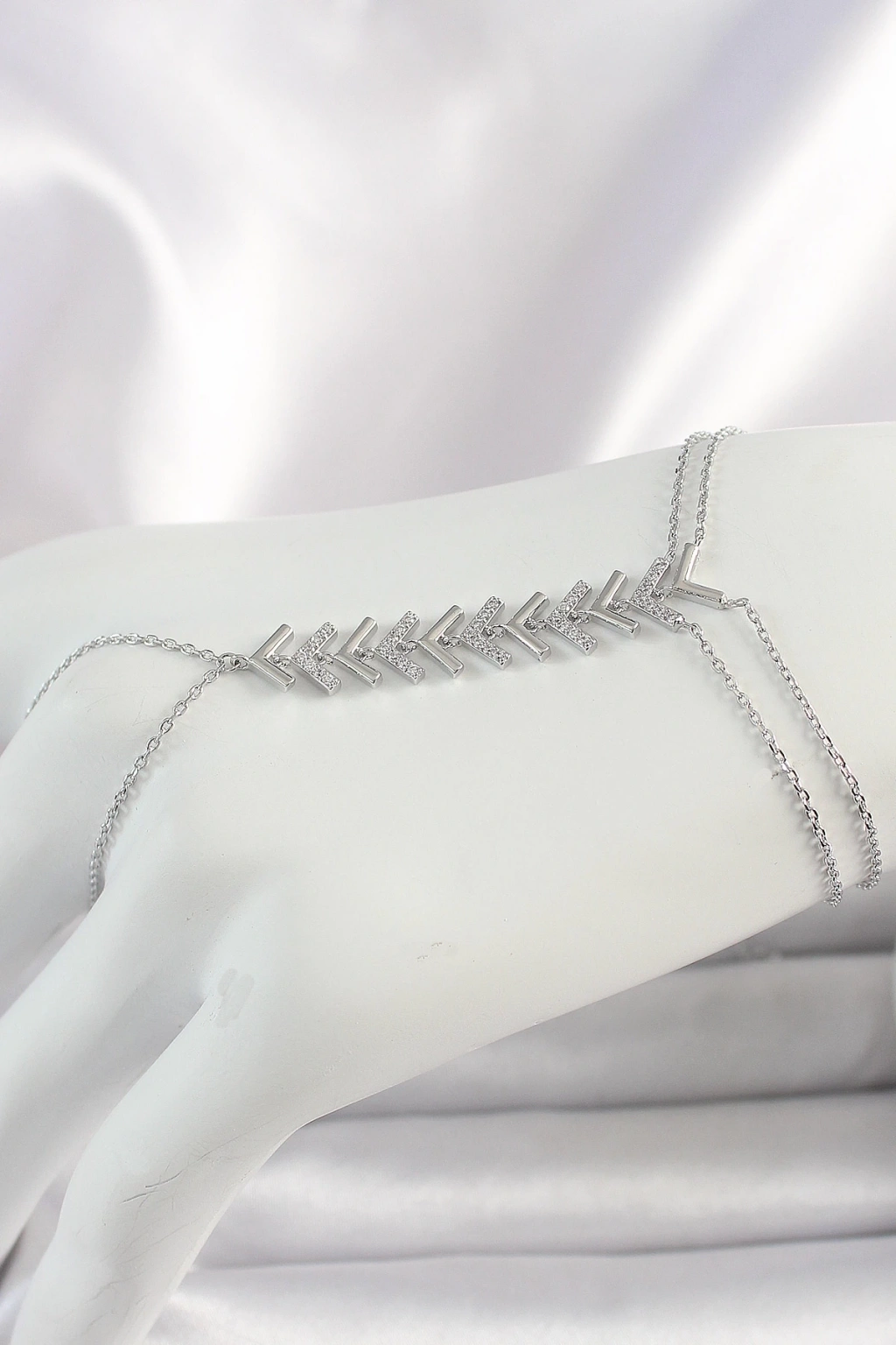 BFS Pirinç Gümüş Renk Zirkon Taşlı V Model Kadın Şahmeran