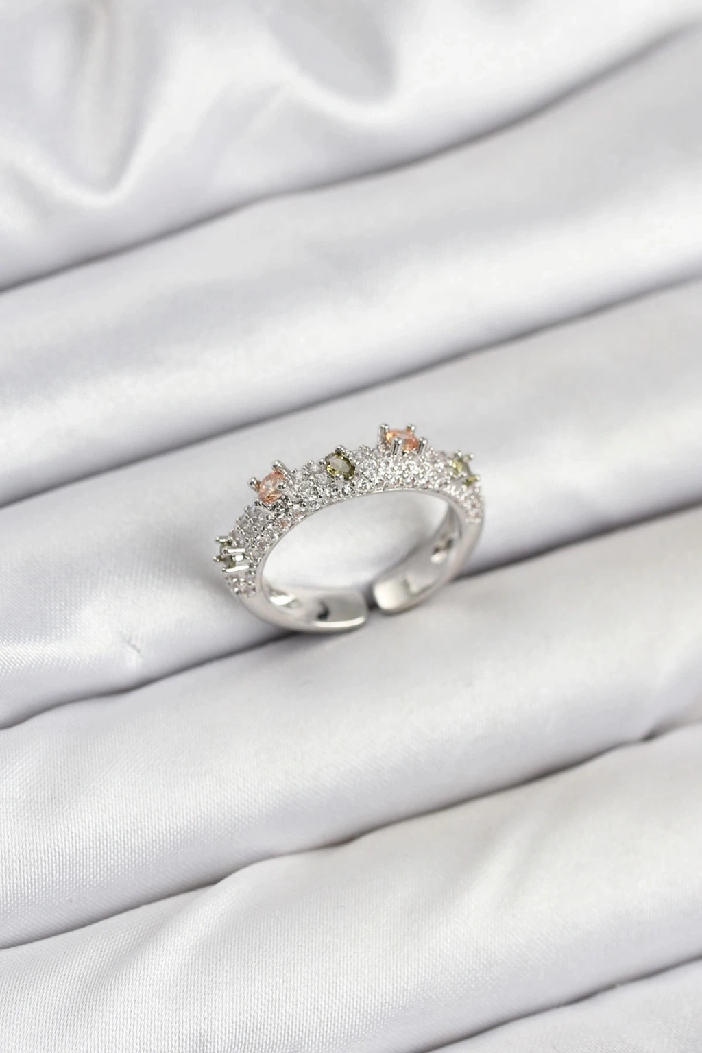 BFS Pirinç Gümüş Renk Zirkon Taşlı Vintage Kadın Yüzük