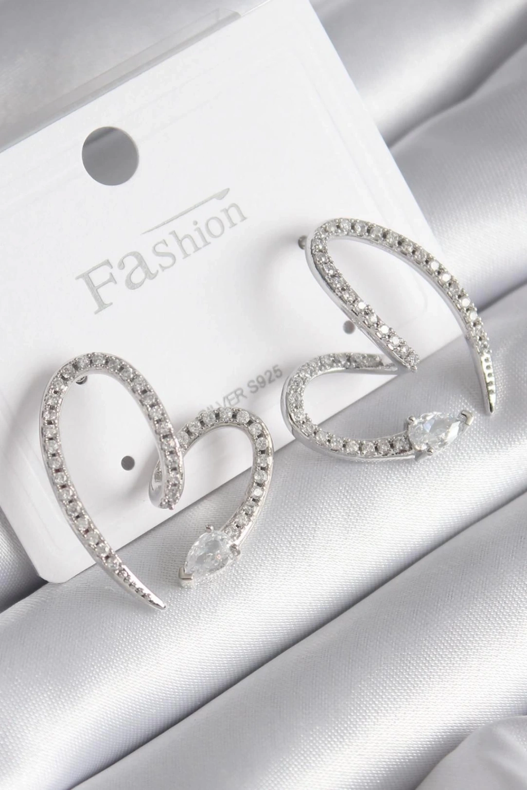 BFS Pirinç Gümüş Renk Zirkon Taşlı Yılan Kalp Model Kadın Küpe