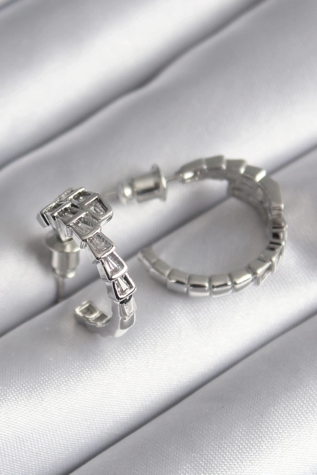BFS Pirinç Gümüş Renk Zirkon Taşlı Yılan Model Kadın Küpe