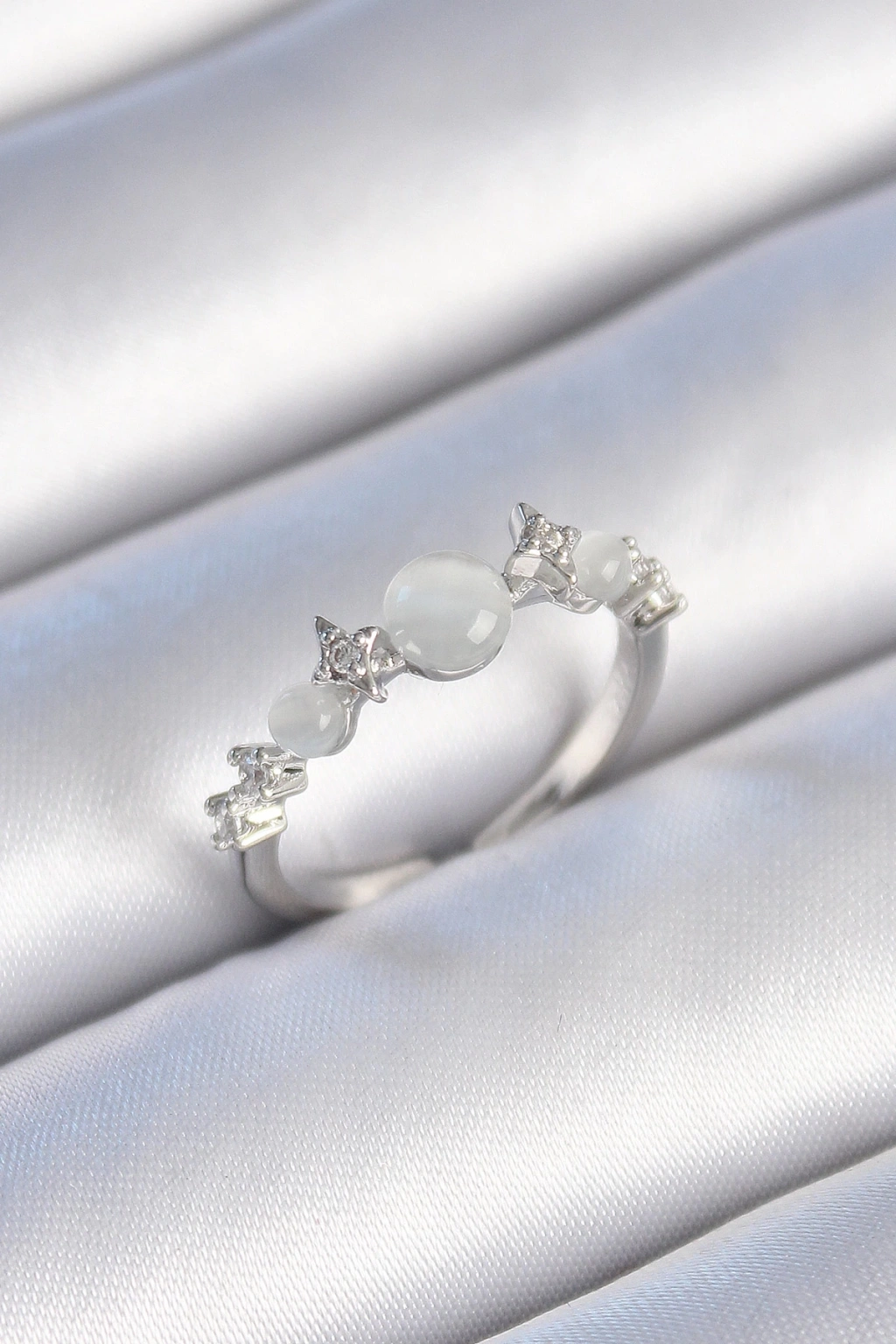BFS Pirinç Gümüş Renk Zirkon Taşlı Yıldız Detay Beyaz Mineli Kadın Yüzük