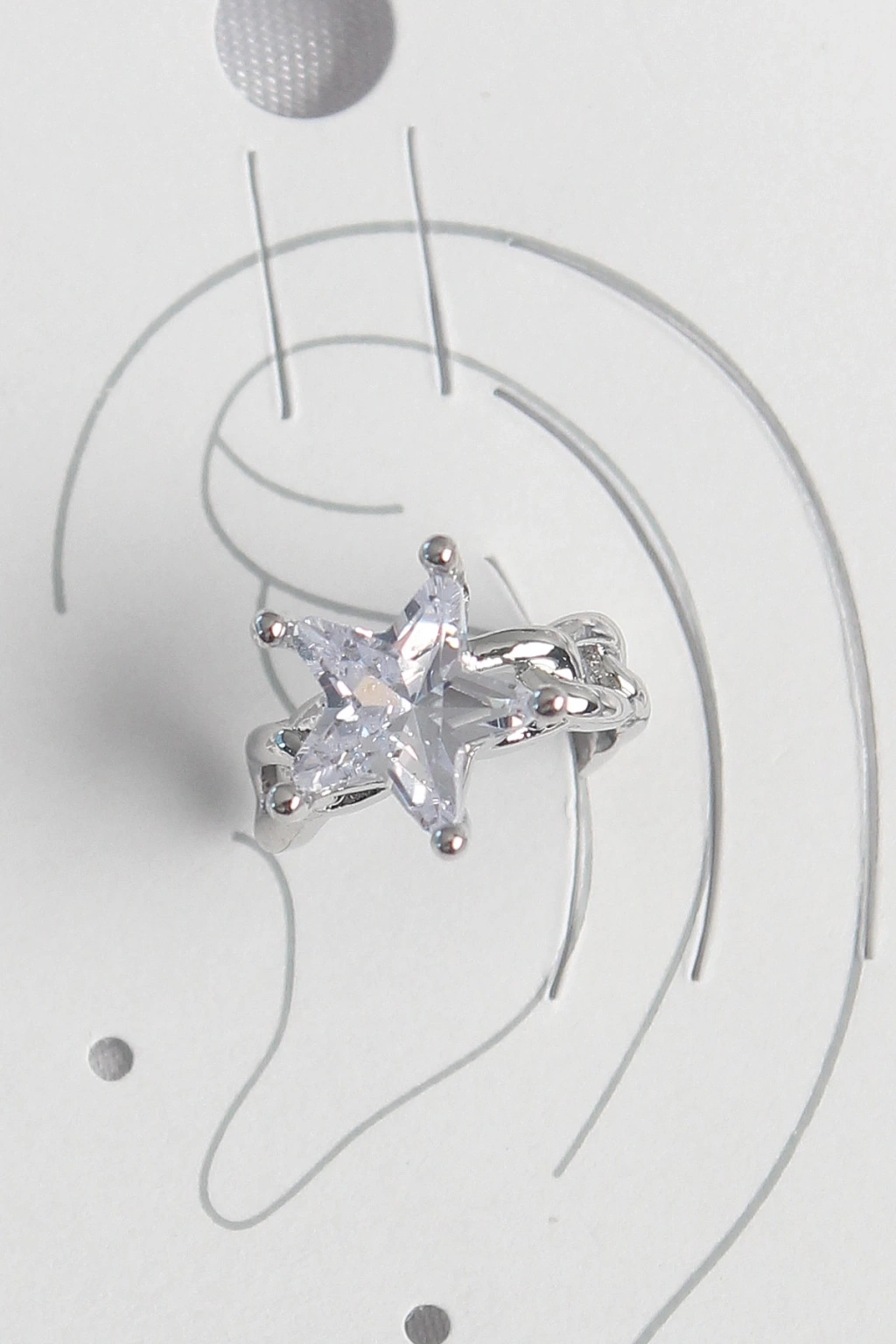 BFS Pirinç Gümüş Renk Zirkon Taşlı Yıldız Model Kadın Kıkırdak Küpe