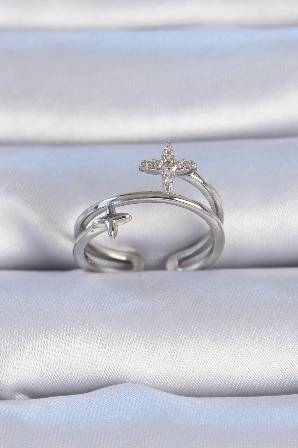 BFS Pirinç Gümüş Renk Zirkon Taşlı Yıldız Model Kadın Yüzük