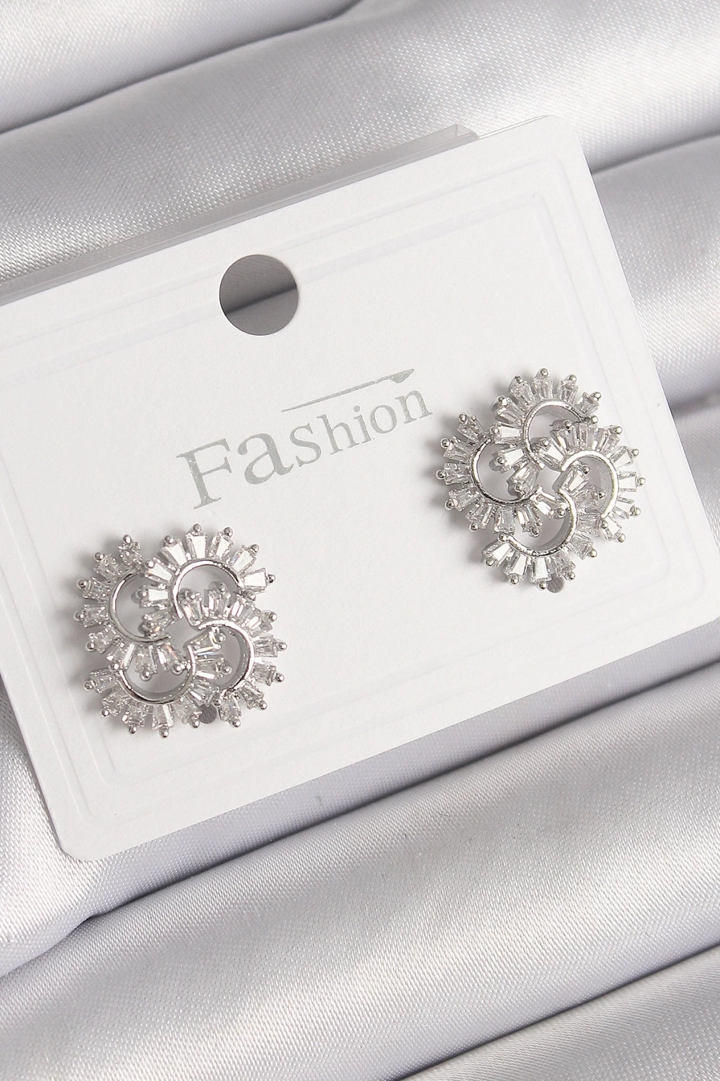 BFS Pirinç Gümüş Renk Zirkon Taşlı Yonca Model Kadın Küpe