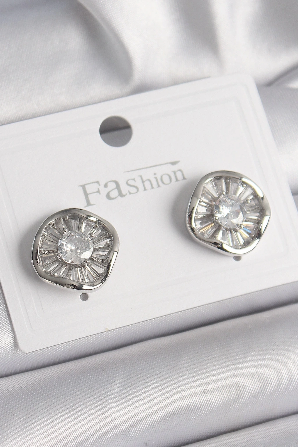 BFS Pirinç Gümüş Renk Zirkon Taşlı Yonca Model Kadın Küpe