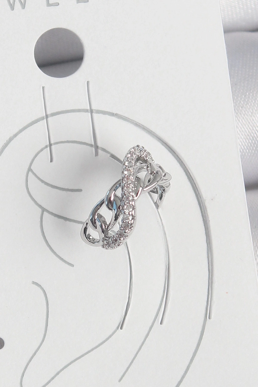 BFS Pirinç Gümüş Renk Zirkon Taşlı Zincir Sonsuzluk Model Kadın Kıkırdak Küpe