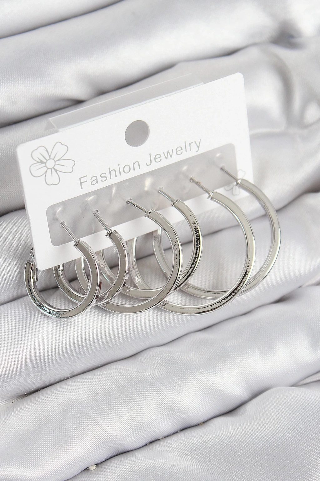 BFS Pirinç Halka Model Gümüş Renk Kadın Set Küpe