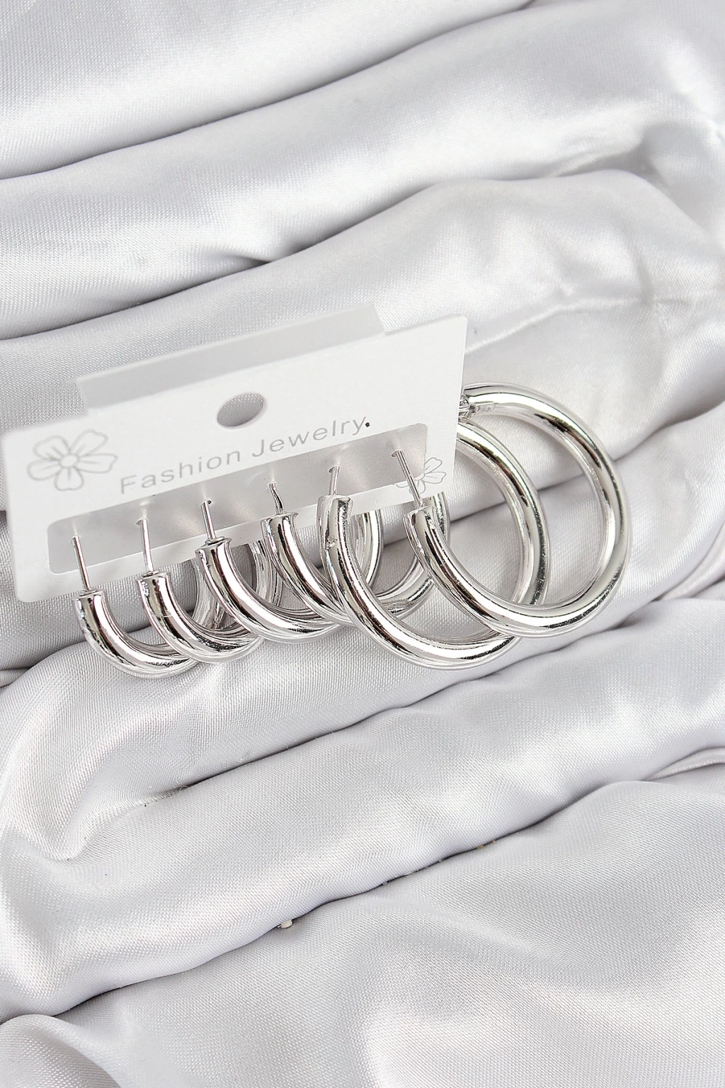 BFS Pirinç Halka Model Gümüş Renk Kadın Set Küpe