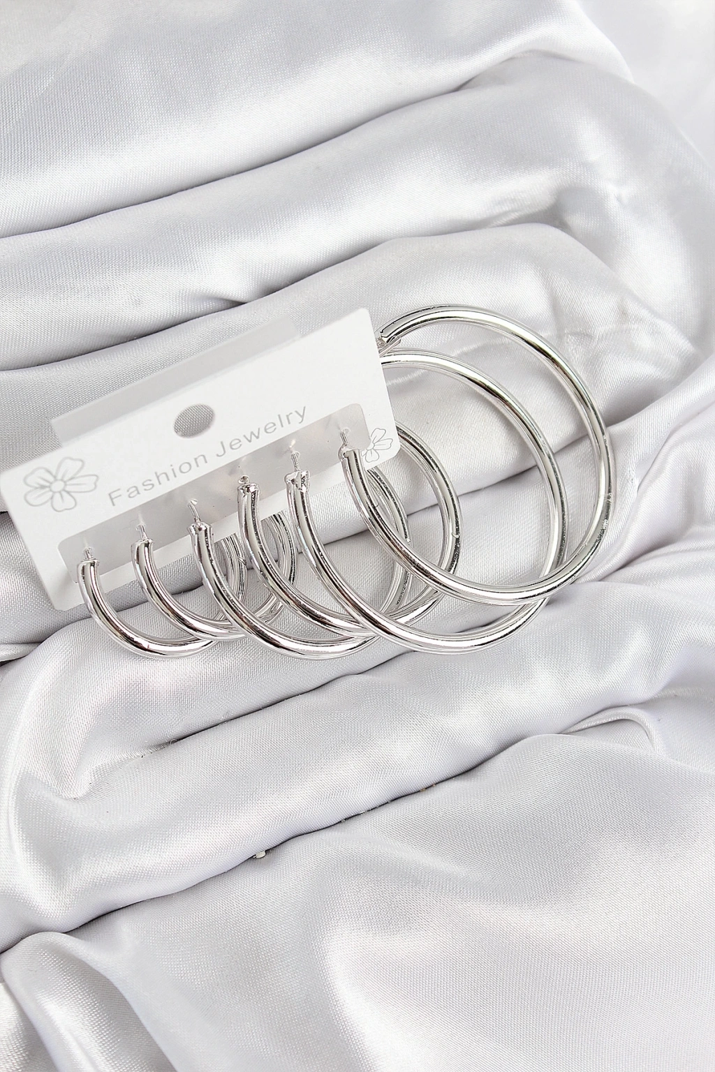 BFS Pirinç Halka Model Gümüş Renk Kadın Set Küpe