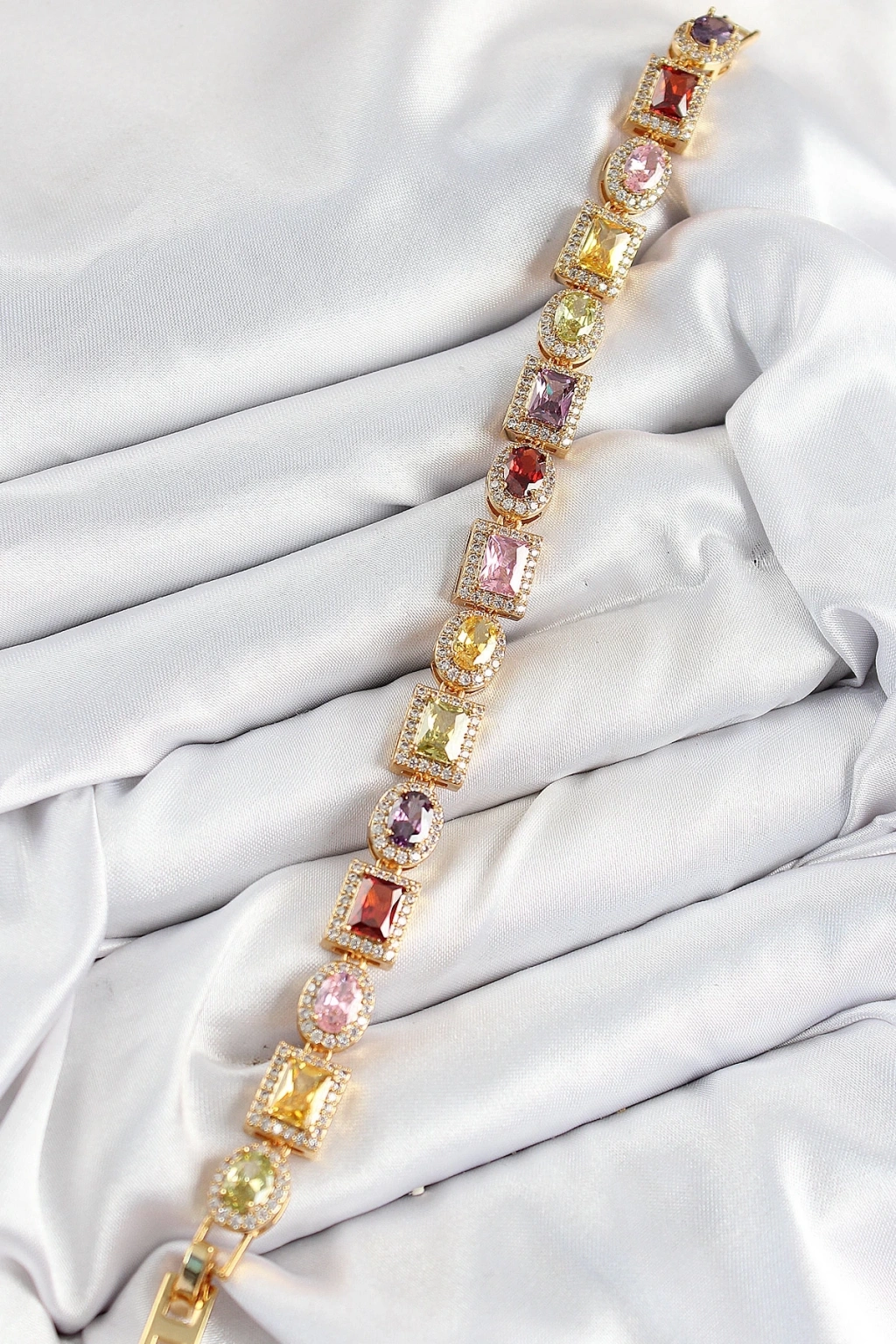 BFS Pirinç Karışık Zirkon Taşlı Baget Model Gold Renk VIP Seri Kadın Bileklik