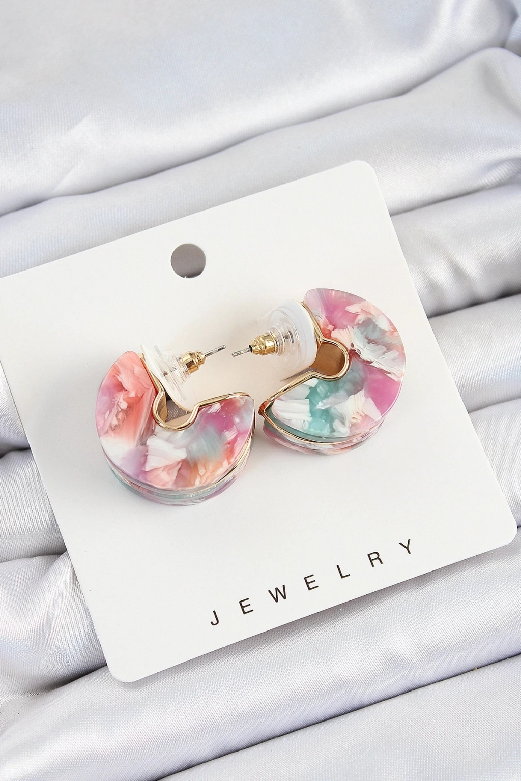 BFS Pirinç Mermer Desenli Vintage Yarım Halka Model Gold Renk Kadın Küpe