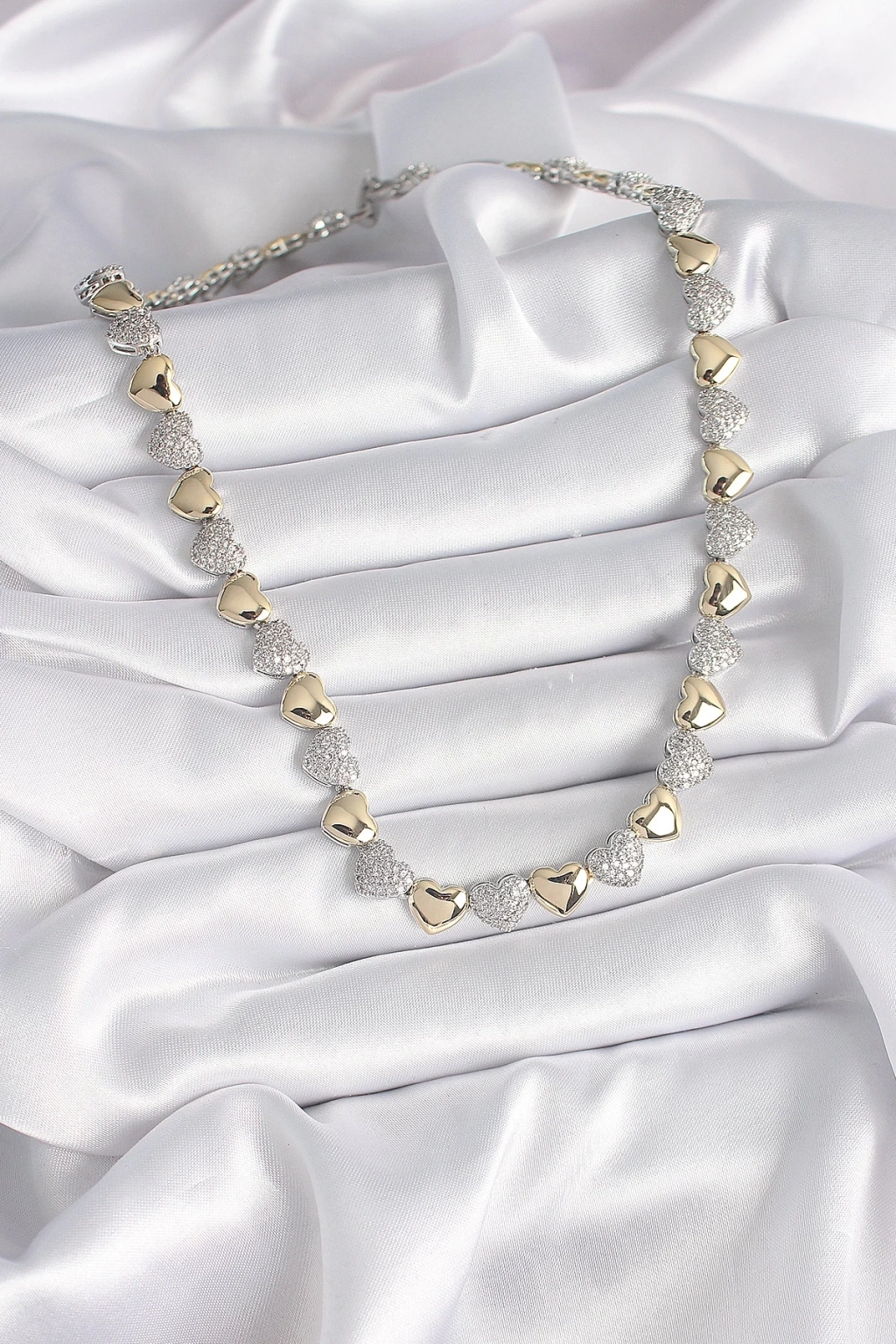 BFS Pirinç Mix Renk Zirkon Taşlı Kalp Model VIP Exclusive Seri Kadın Kolye