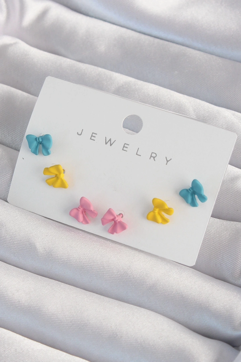 BFS Pirinç Rengarenk Mineli Minimal Fiyonk Küpe Seti