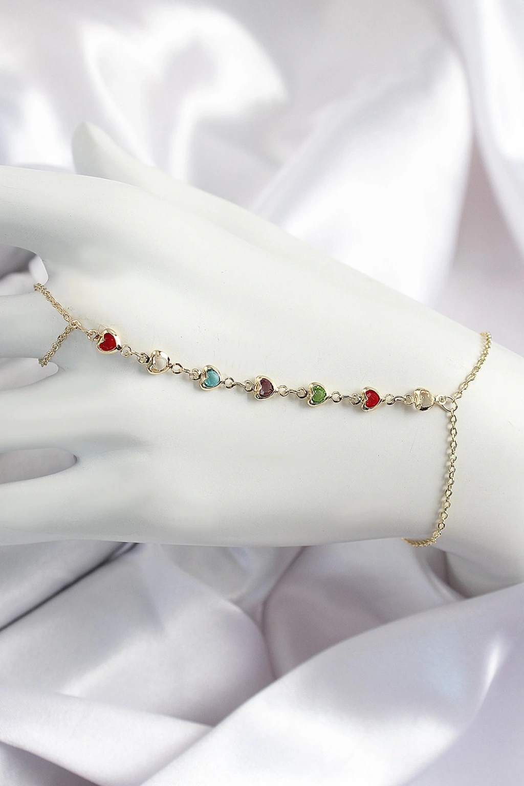 BFS Pirinç Renkli Kalpli Zirkon Taşlı Y Model Gold Renk Kadın Şahmeran