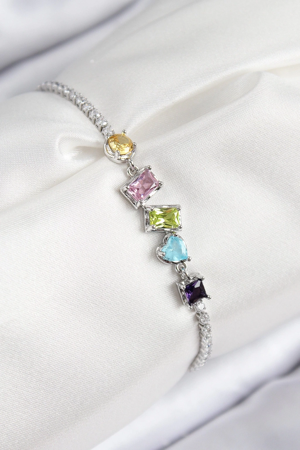 BFS Pirinç Renkli Zirkon Taşlı Geometrik Model Gümüş Renk Kadın Bileklik