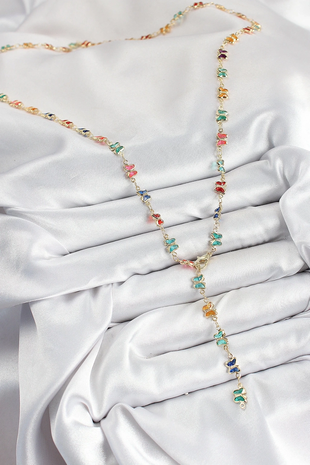 BFS Pirinç Renkli Zirkon Taşlı Kelebek Model Gold Renk Kadın Y Kolye