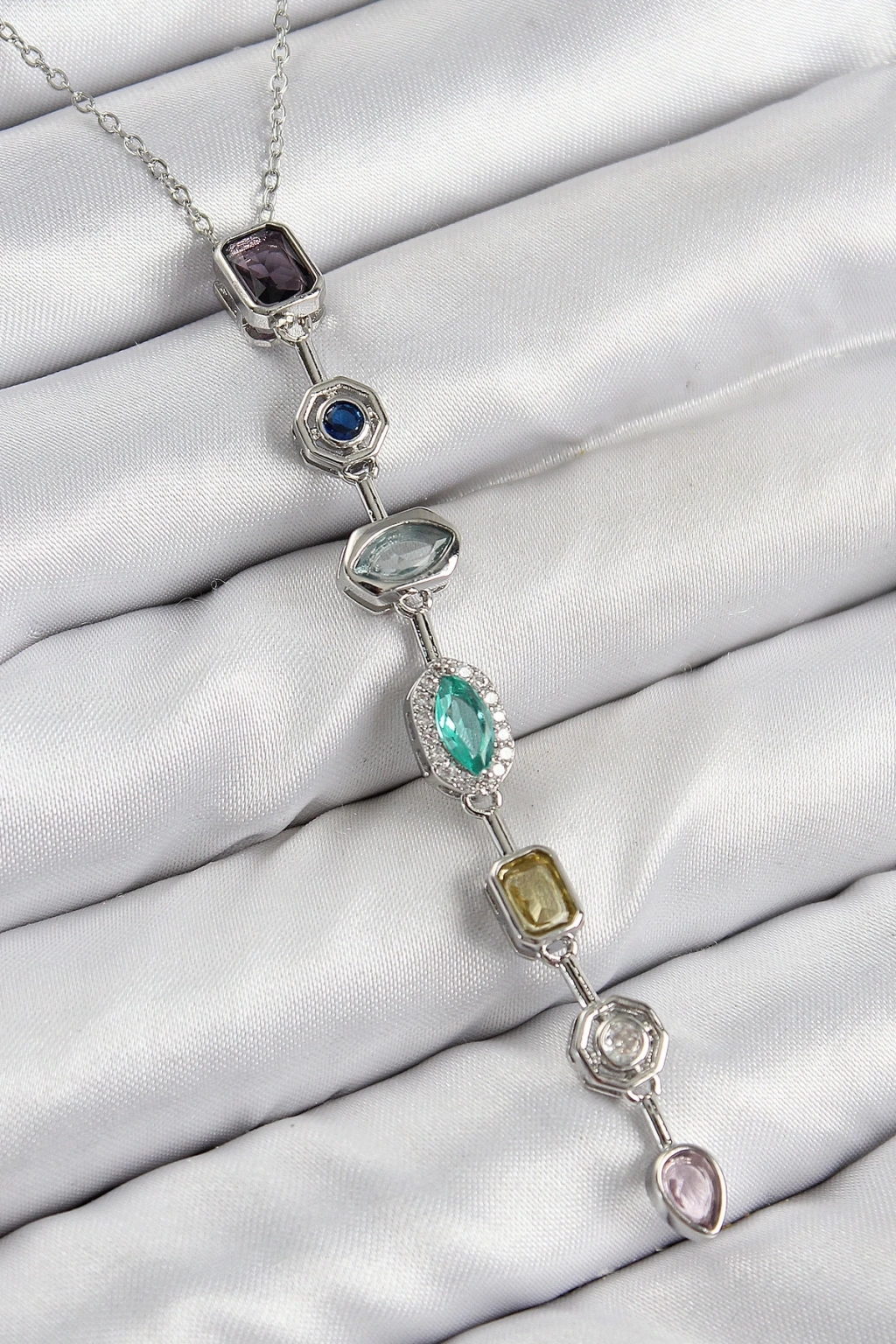 BFS Pirinç Renkli Zirkon Taşlı Model Gümüş Renk Kadın Y Kolye