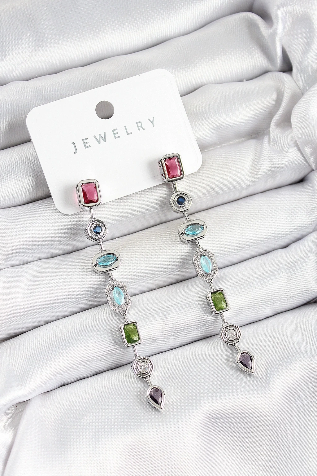 BFS Pirinç Renkli Zirkon Taşlı Sallantılı Model Gümüş Renk Kadın Küpe