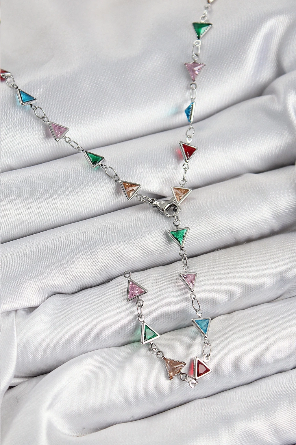 BFS Pirinç Renkli Zirkon Taşlı Üçgen Model Gümüş Renk Kadın Y Kolye