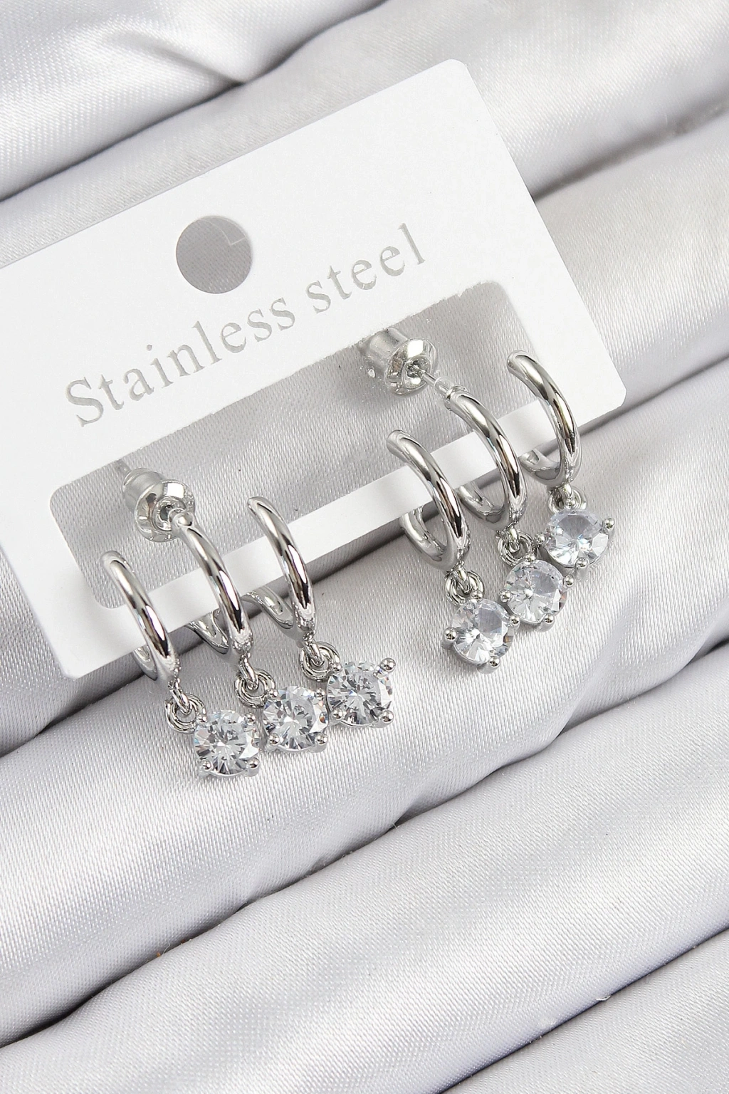 BFS Pirinç Sallantılı Zirkon Taşlı Model Gümüş Renk Kadın Küpe