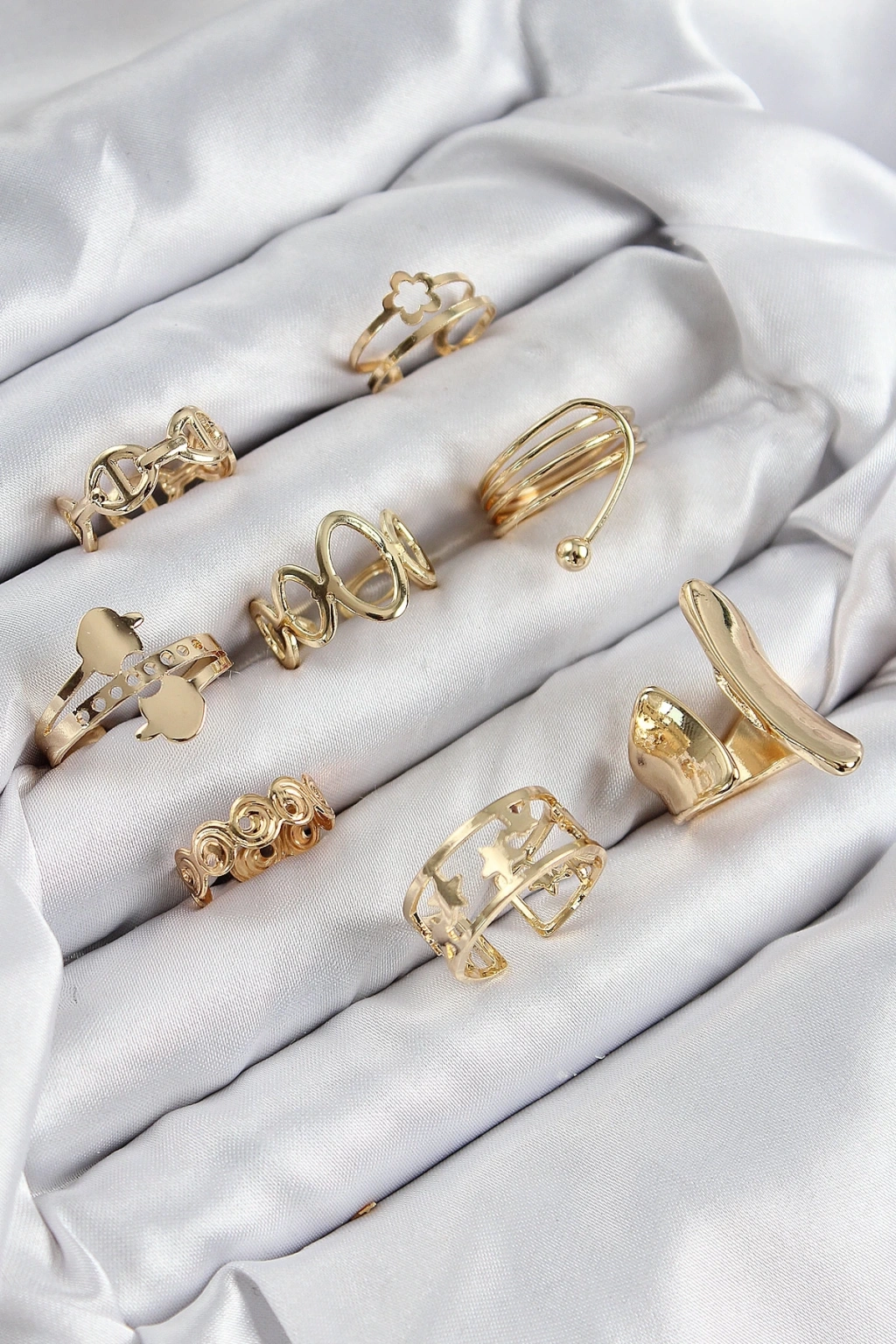 BFS Pirinç Sarmal Ve Yıldız Model Gold Renk Kadın Yüzük Kombin Set