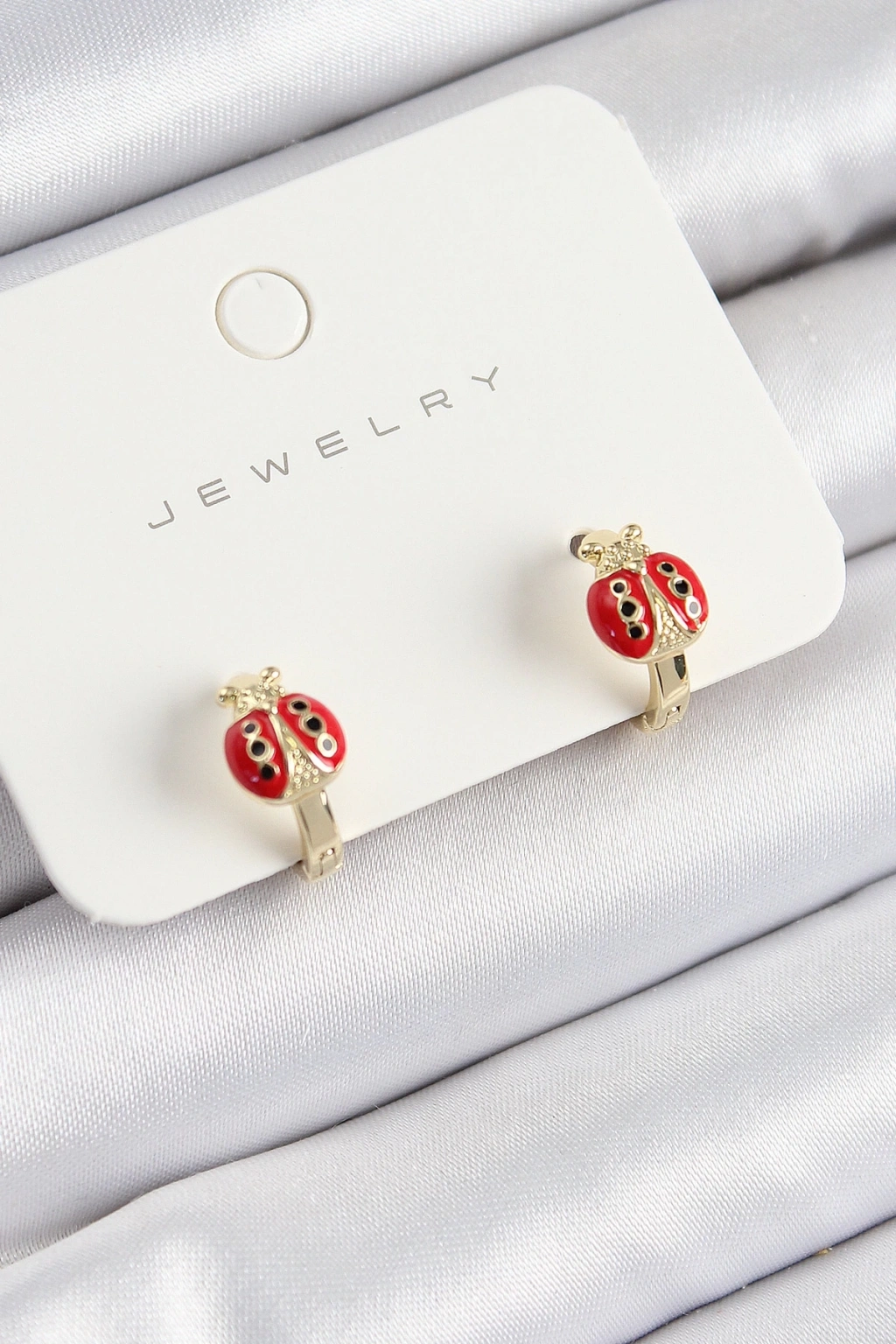 BFS Pirinç Uğur Böceği Model Gold Renk Çocuk Küpe