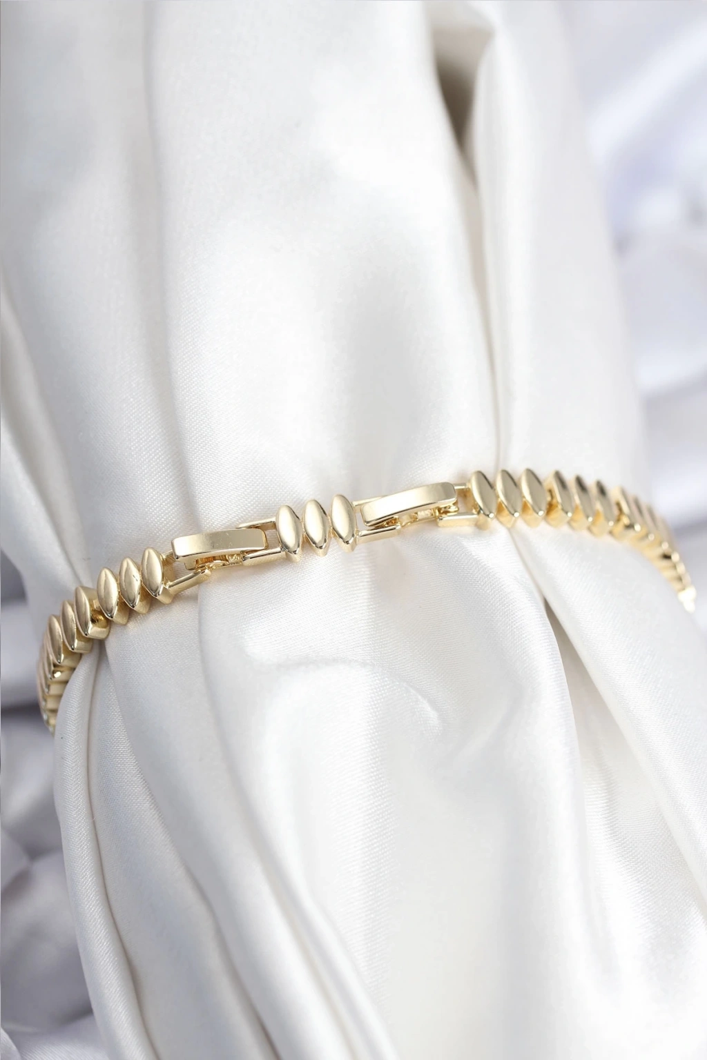 BFS Pirinç VIP Seri Gold Renk Zirkon Taşlı Arpa Model Kadın Bileklik