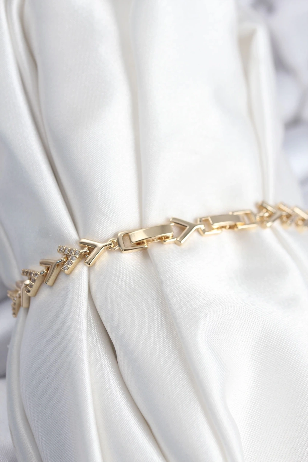 BFS Pirinç VIP Seri Gold Zirkon Taşlı Balık Sırtı Model Kadın Bileklik