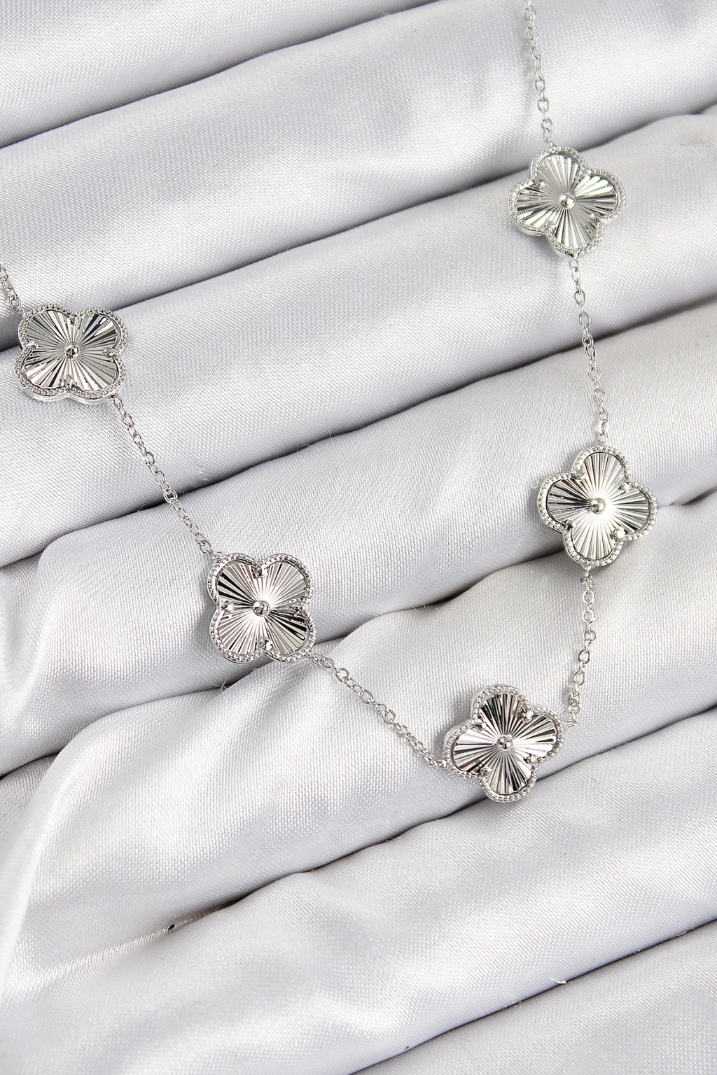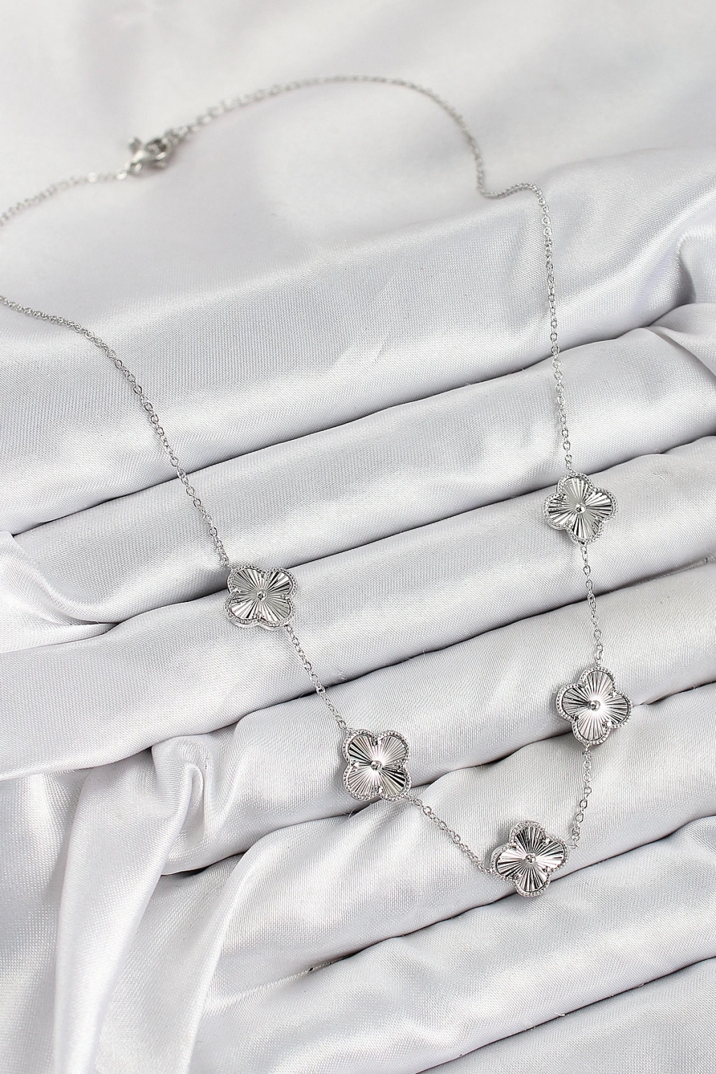 BFS Pirinç VIP Yonca Model Gümüş Renk Kadın Kolye