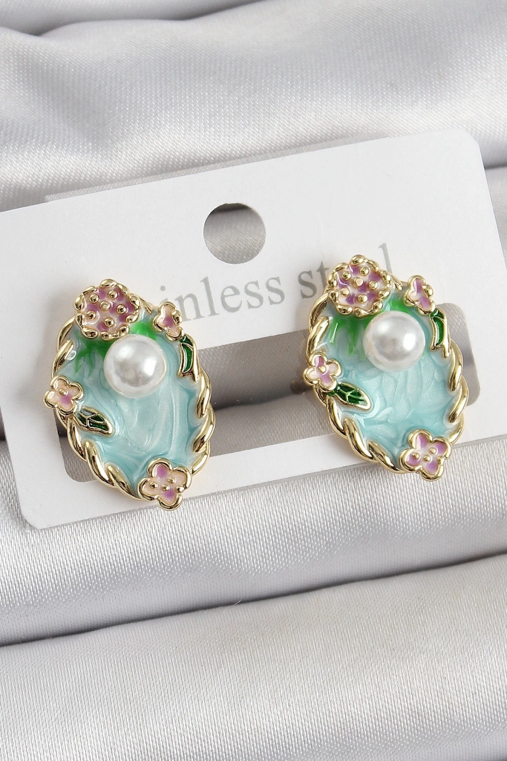BFS Pirinç Yeşil Mineli İnci Detaylı Sanatsal Portre Model Gold Renk Kadın Küpe