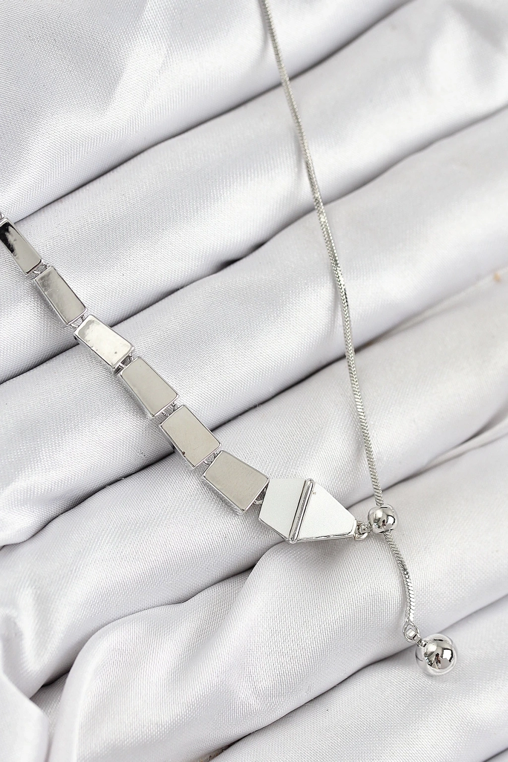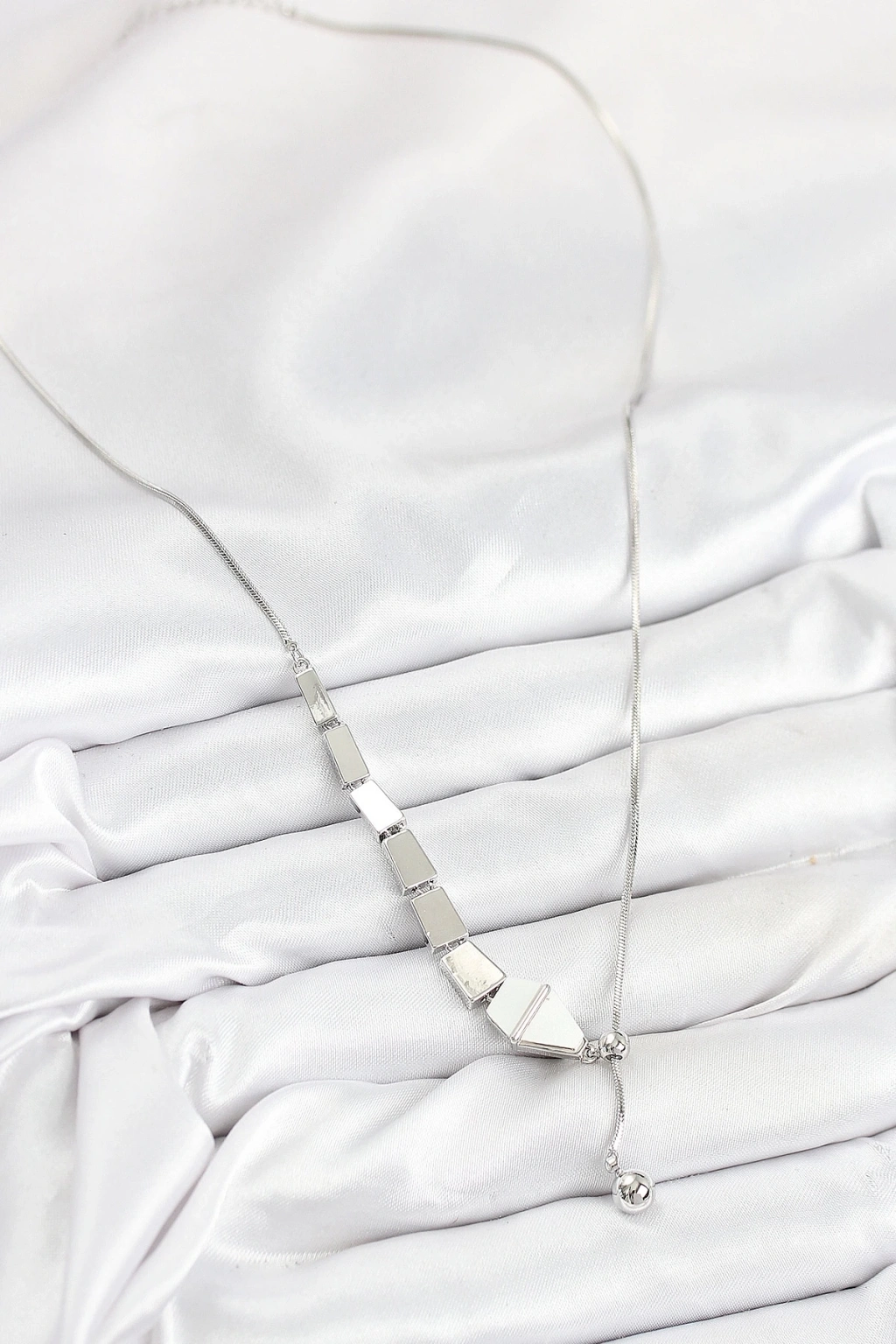 BFS Pirinç Yılan Model Gümüş Renk Asansörlü Kadın Kolye
