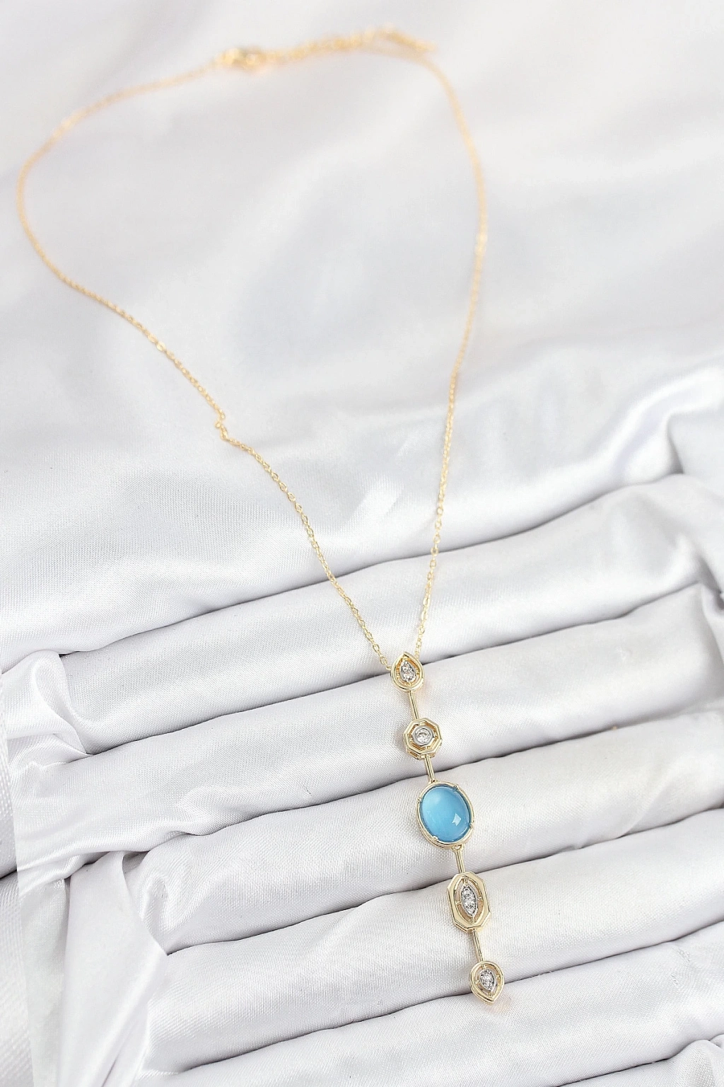 BFS Pirinç Zincir Mavi Gold Renk Zirkon Taşlı Y Kolye