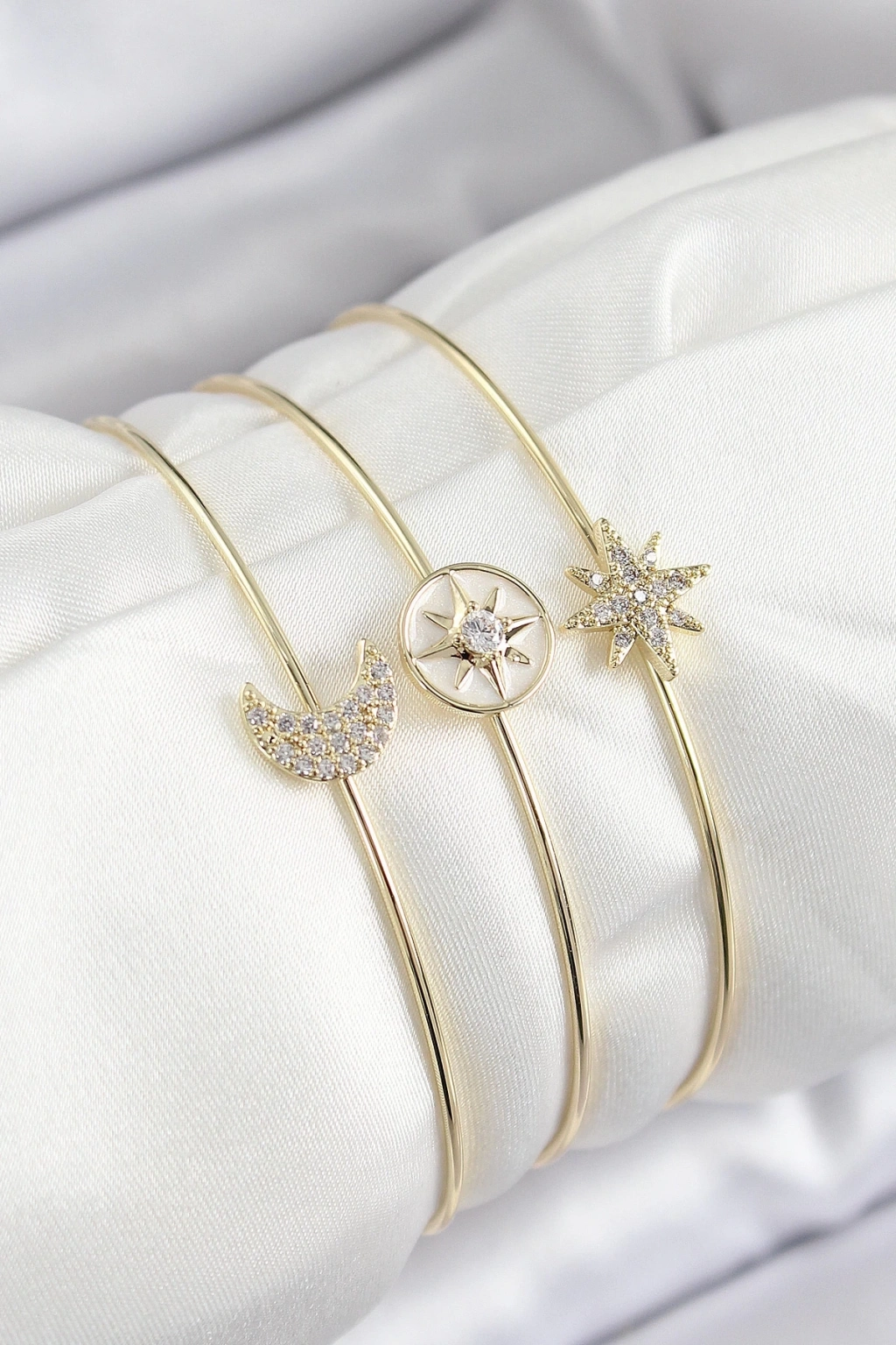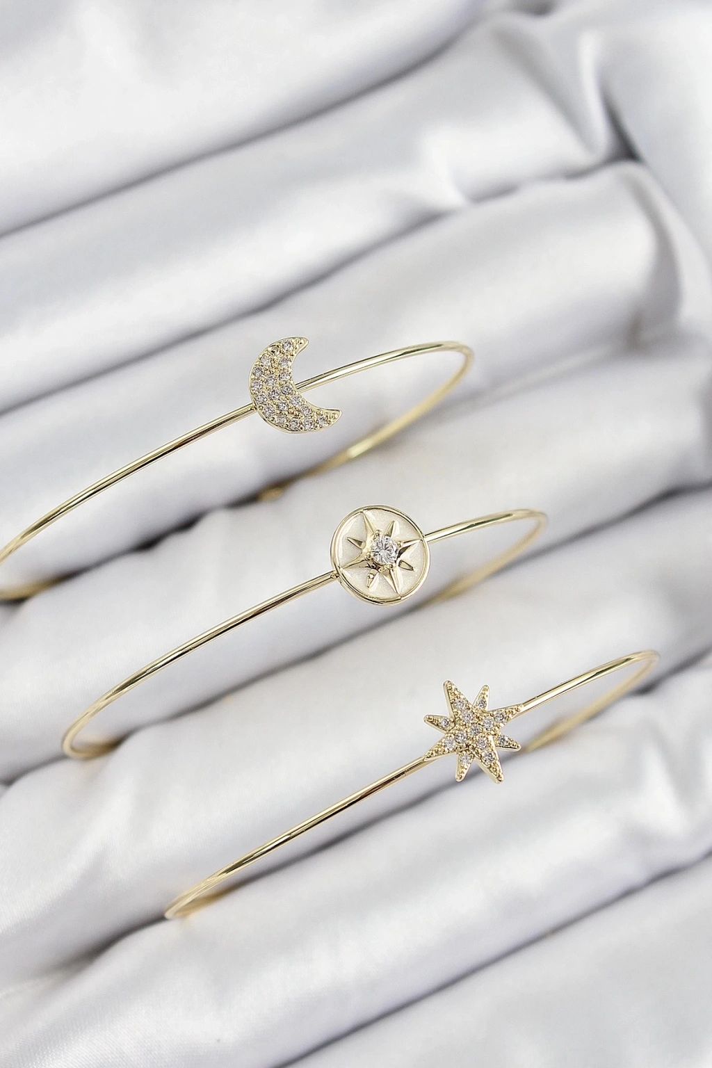 BFS Pirinç Zirkon Taşlı Ay Ve Kutup Yıldızı Model Gold Renk Vip 3'lü Kadın Bileklik
