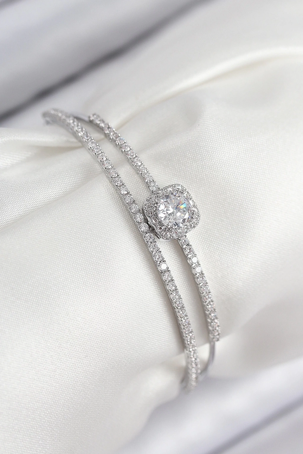 BFS Pirinç Zirkon Taşlı Baget Model Gümüş Renk Kadın Bileklik