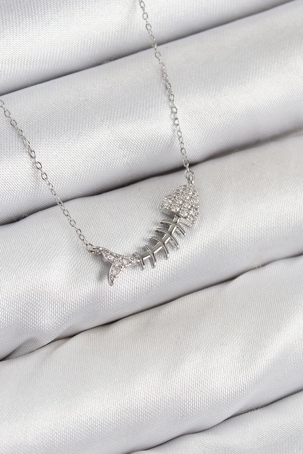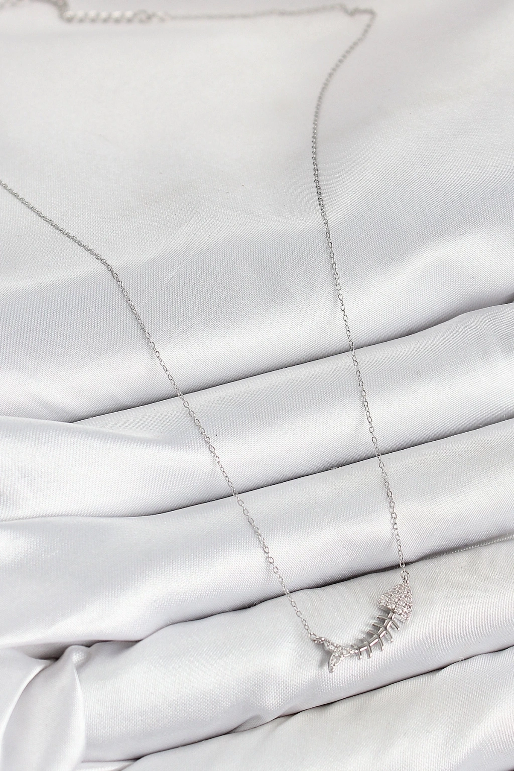 BFS Pirinç Zirkon Taşlı Balık Kılçığı Model Gümüş Renk Kadın Kolye