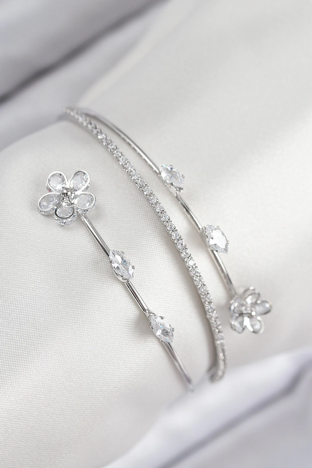 BFS Pirinç Zirkon Taşlı Çiçek Model Gümüş Renk Kadın Bileklik