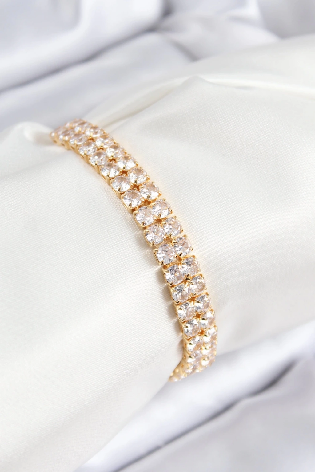 BFS Pirinç Zirkon Taşlı Çift Sıra Kare Model Gold Renk Asansörlü Kadın Bileklik