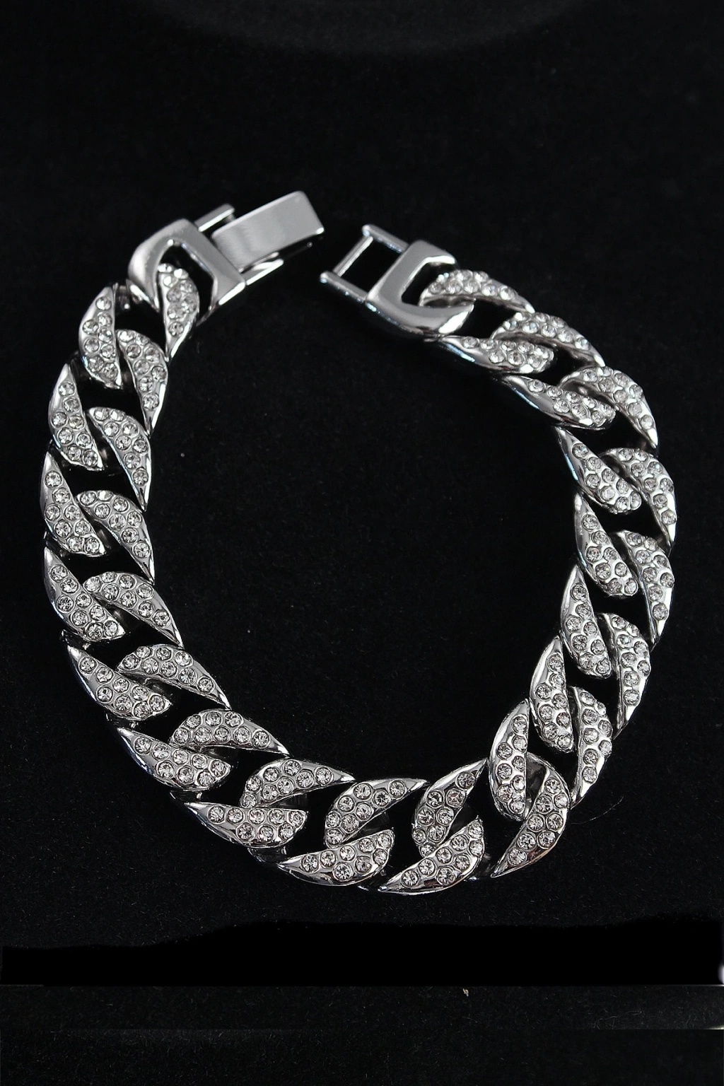 BFS Pirinç Zirkon Taşlı Cuba Gurmet Model Gümüş Renk Erkek Bileklik