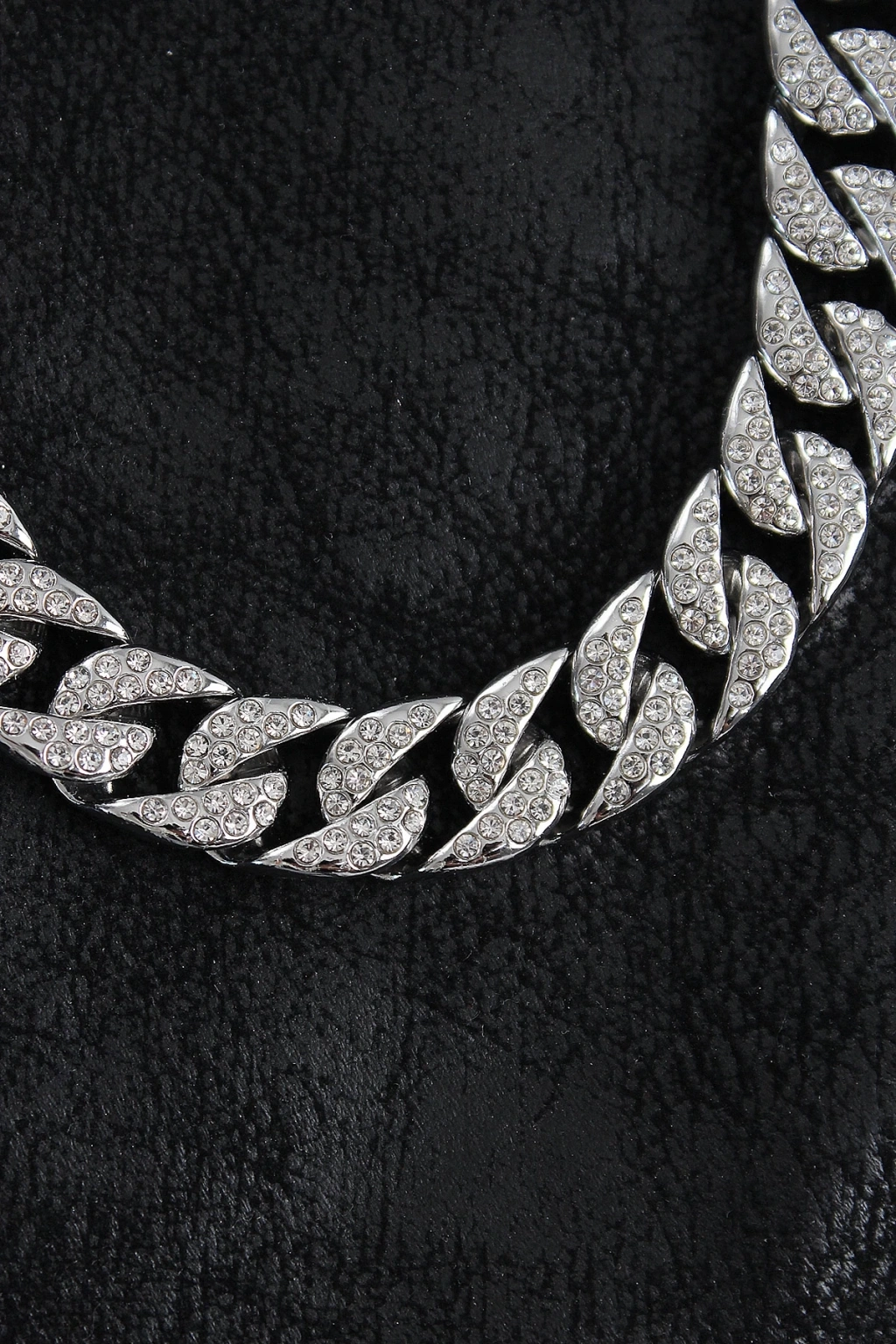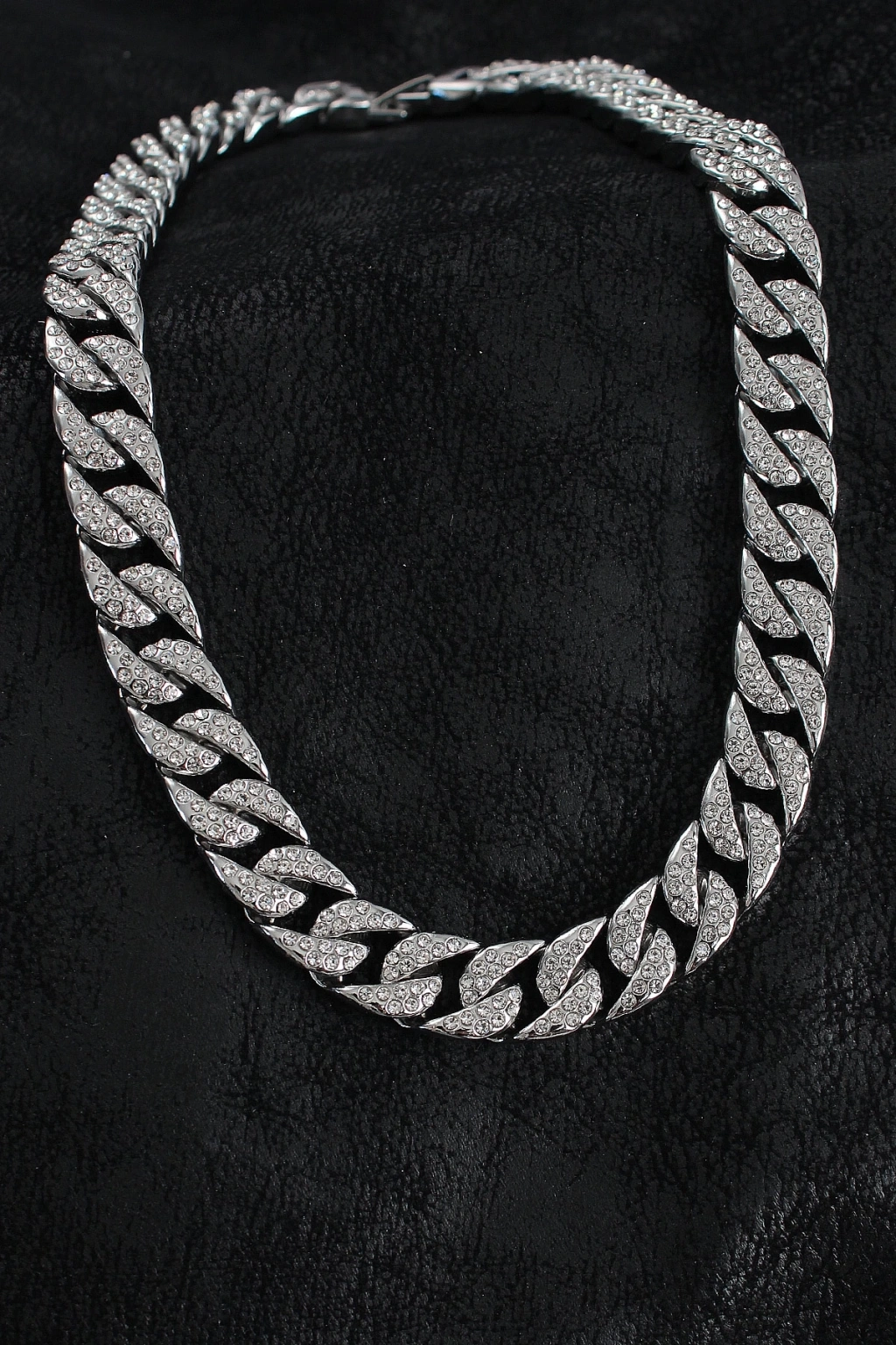 BFS Pirinç Zirkon Taşlı Cuba Gurmet Model Gümüş Renk Erkek Kolye