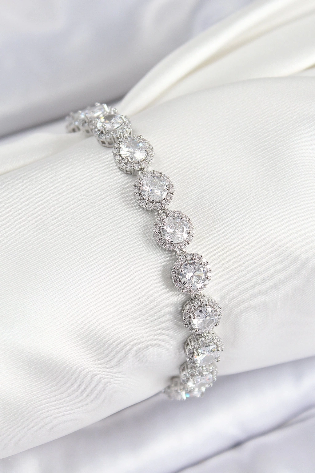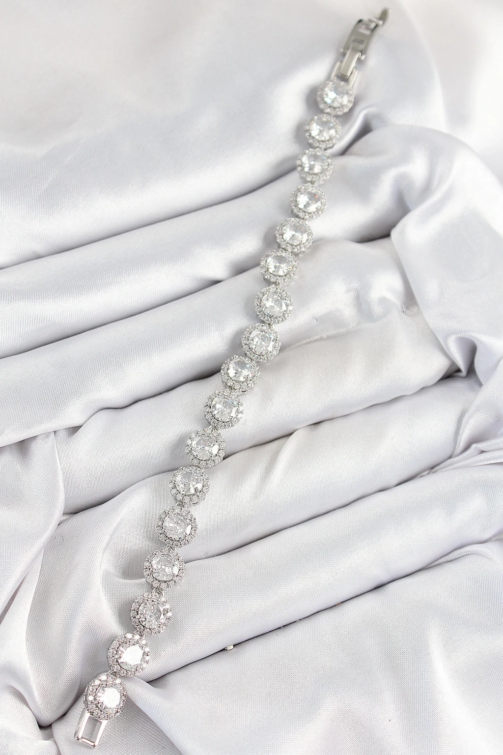 BFS Pirinç Zirkon Taşlı Daire Baget Model Gümüş Renk VIP Seri Kadın Bileklik