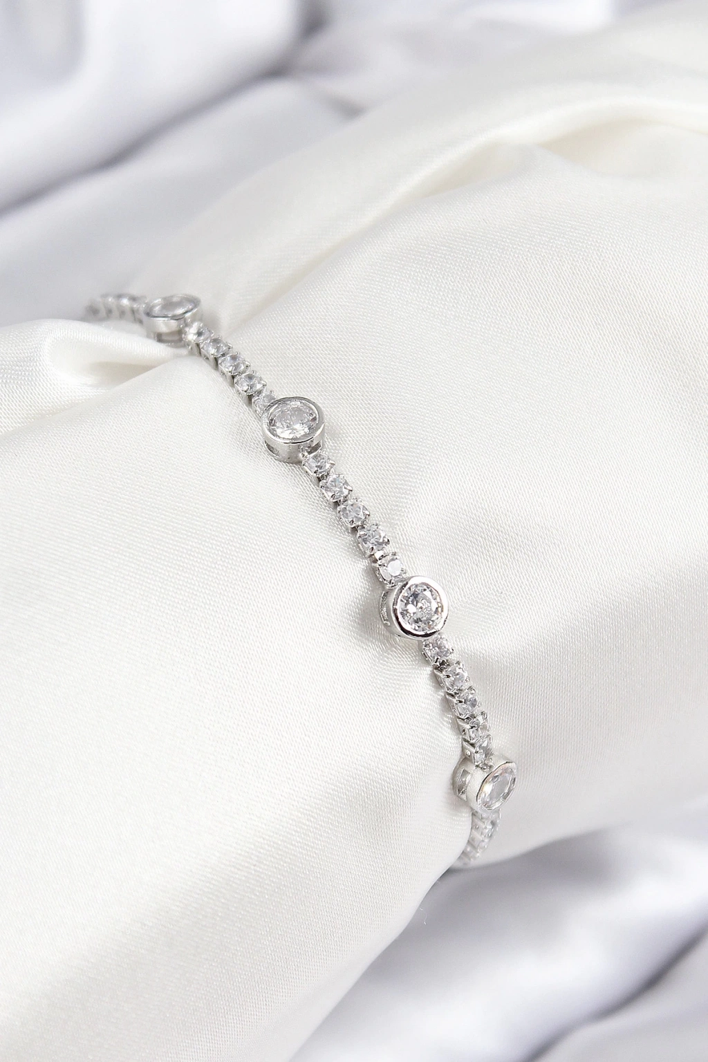 BFS Pirinç Zirkon Taşlı Daire Model Gümüş Renk Asansörlü Kadın Bileklik
