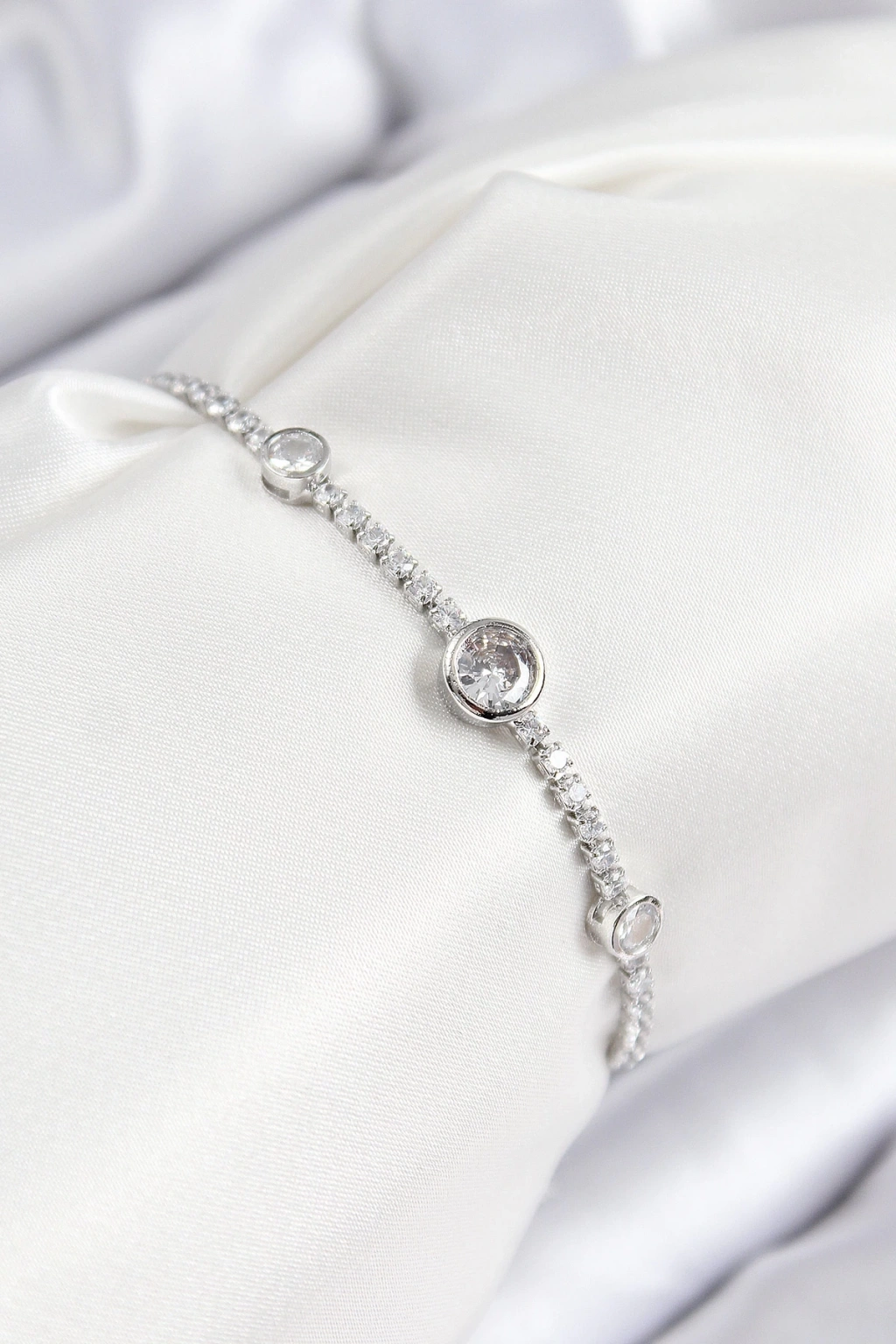 BFS Pirinç Zirkon Taşlı Daire Model Gümüş Renk Asansörlü Kadın Bileklik