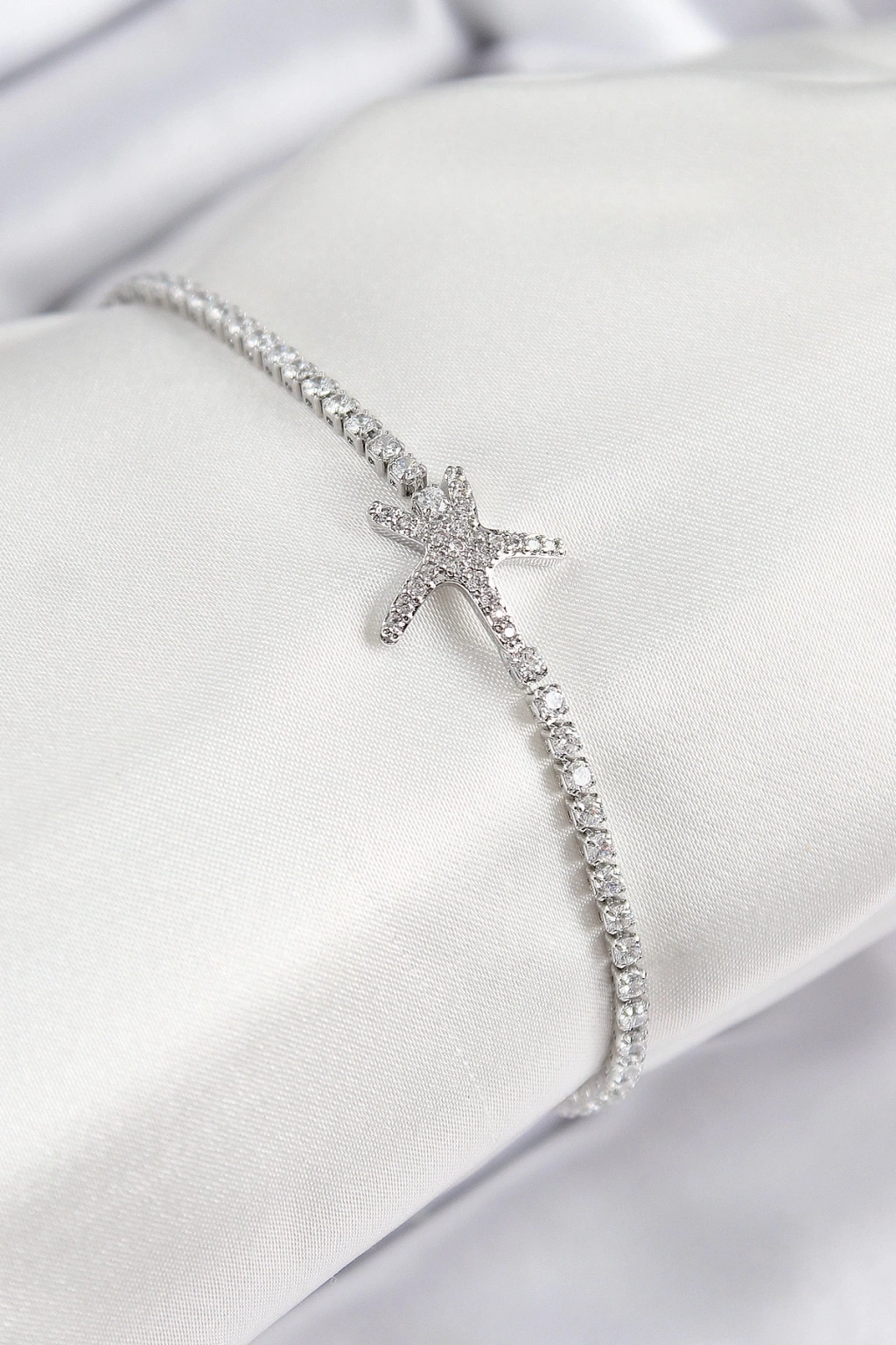 BFS Pirinç Zirkon Taşlı Deniz Yıldızı Model Gümüş Renk Kadın Bileklik