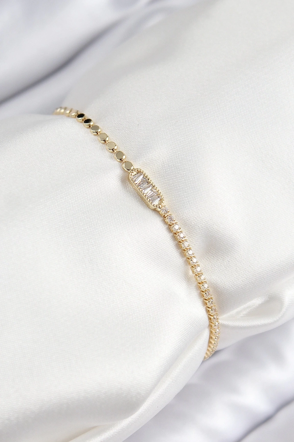 BFS Pirinç Zirkon Taşlı Dikdörtgen Model Ezme Zincir Gold Renk Kadın Bileklik
